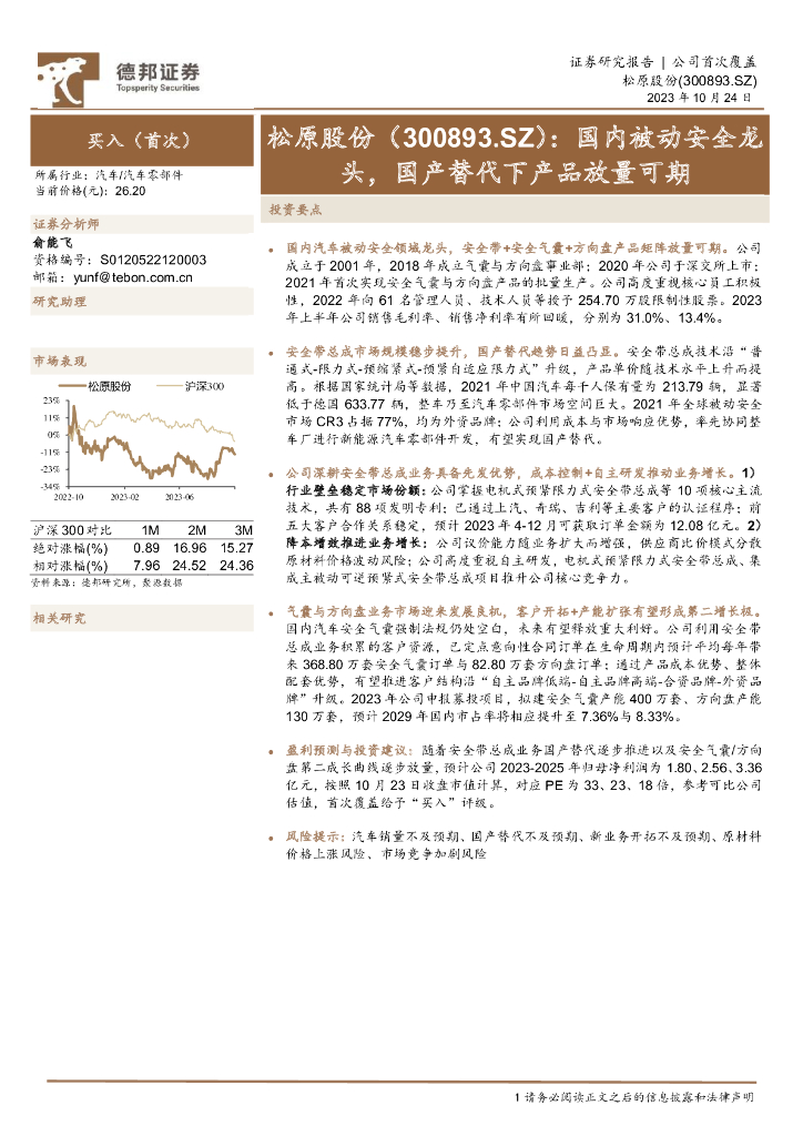 德邦证券:松原股份(300893)-国内被动安全龙头,国产替代下产品放量可期.pdf