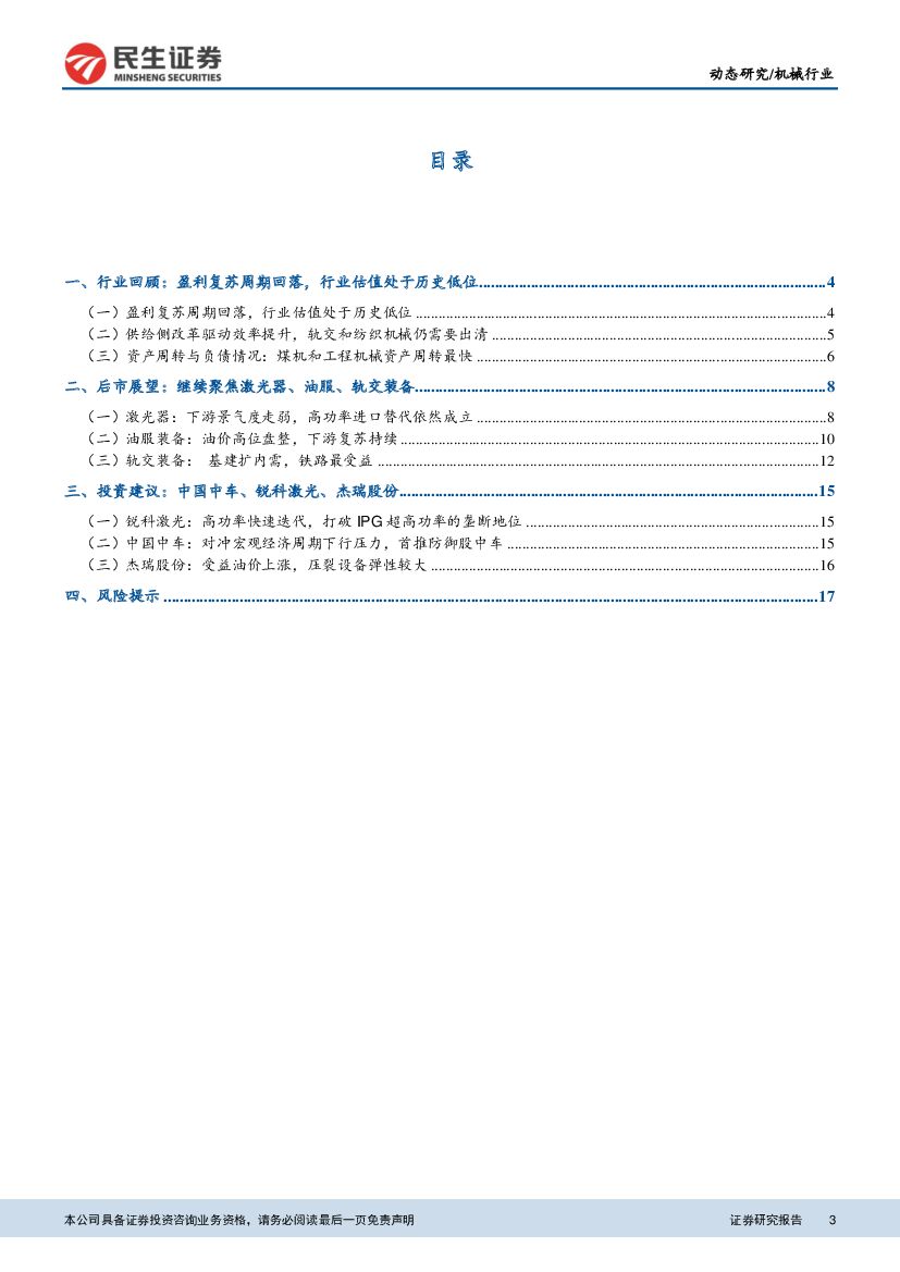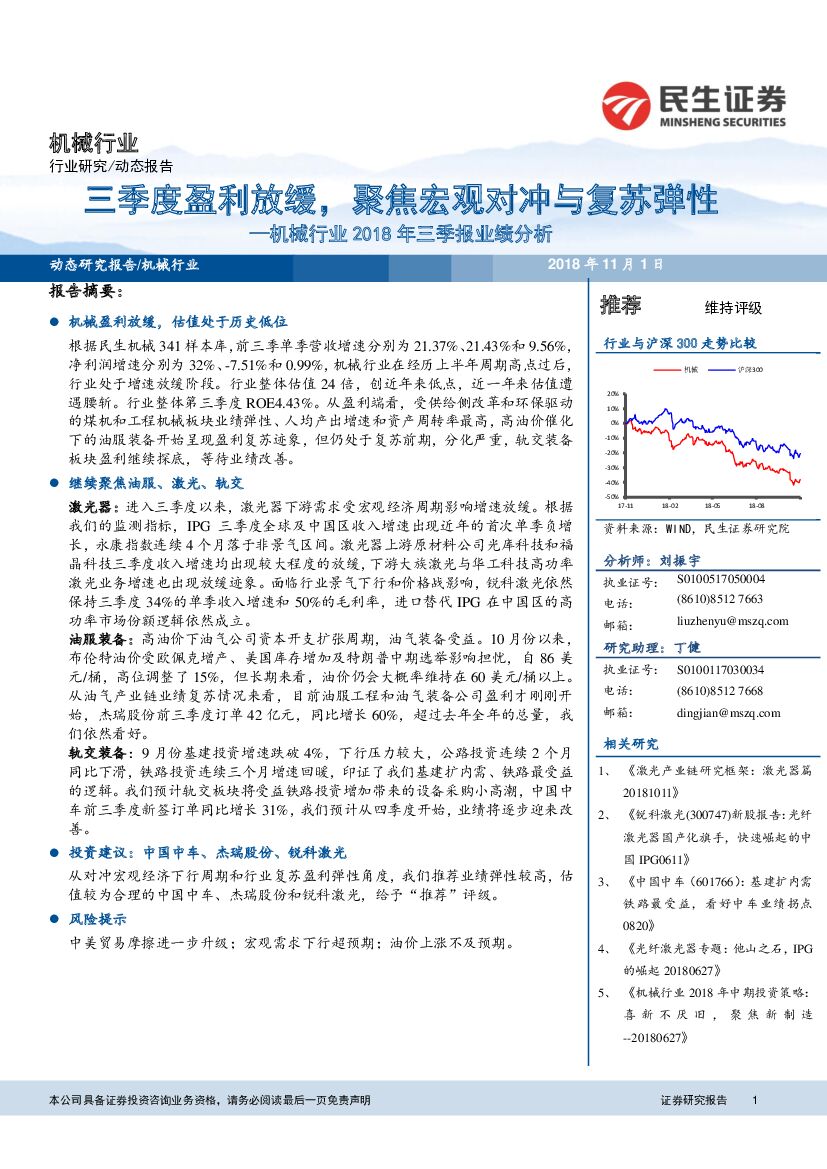 民生证券:机械行业2018年三季报业绩分析:三季度盈利放缓,聚焦宏观对冲与复苏弹性.pdf