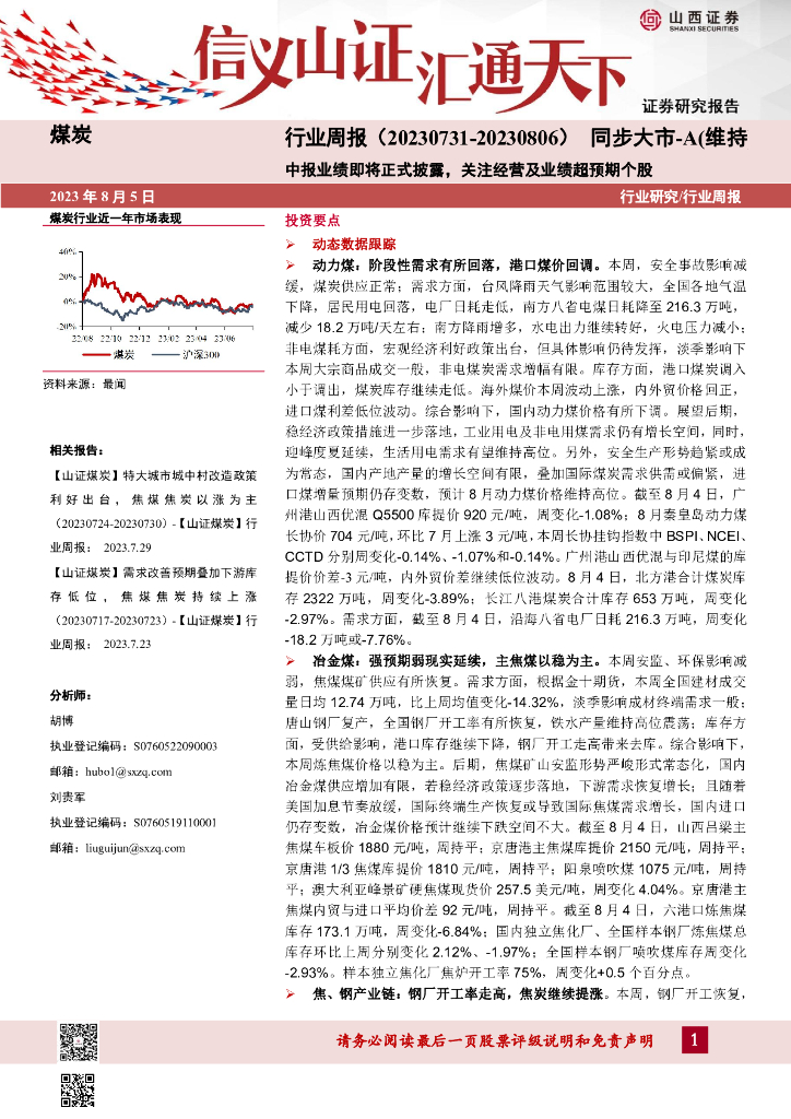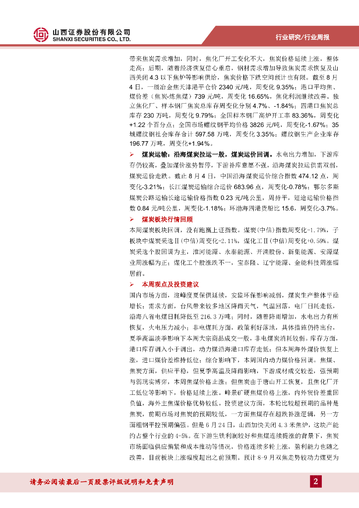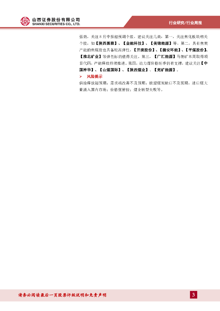 山西证券:煤炭行业周报:中报业绩即将正式披露,关注经营及业绩超预期个股.pdf