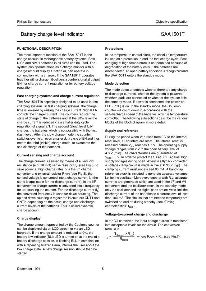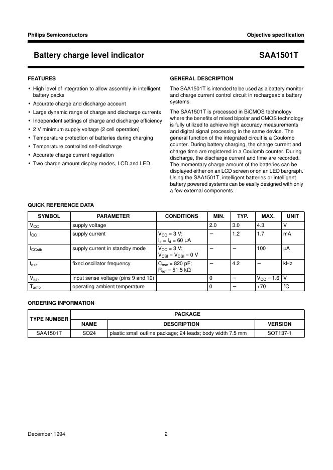 philips SAA1501T Battery charge level indicator 数据手册.pdf