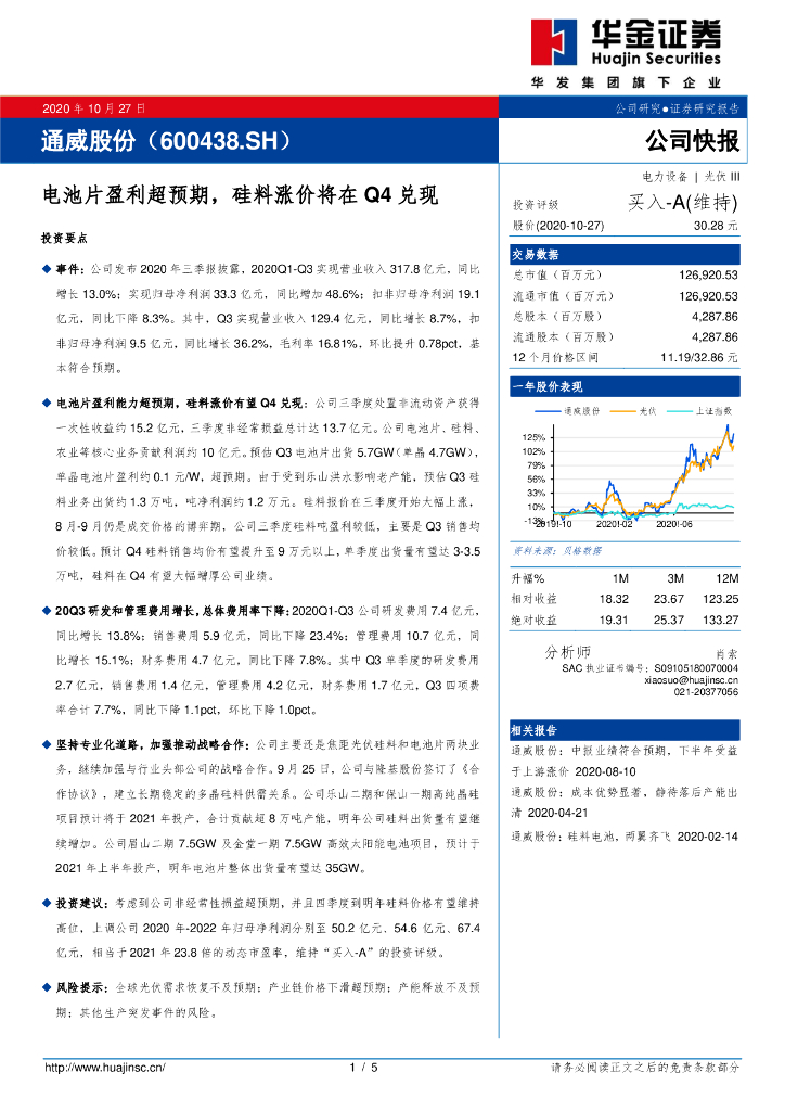 华金证券:通威股份(600438)-电池片盈利超预期,硅料涨价将在Q4兑现.pdf
