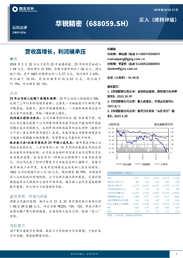 国金证券:华锐精密(688059)-营收高增长,利润端承压.pdf