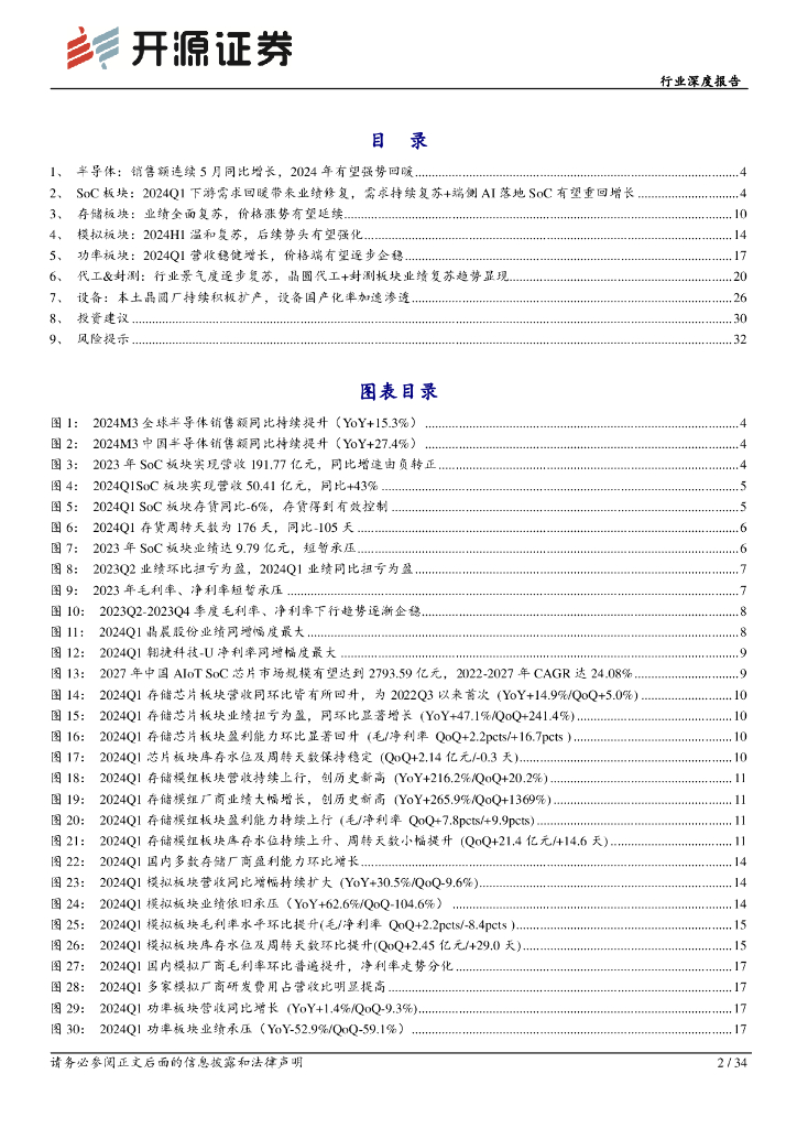 开源证券:半导体板块2023年年报及2024年一季报总结:多板块业绩复苏,AI有望拉动半导体景气持续向上.pdf