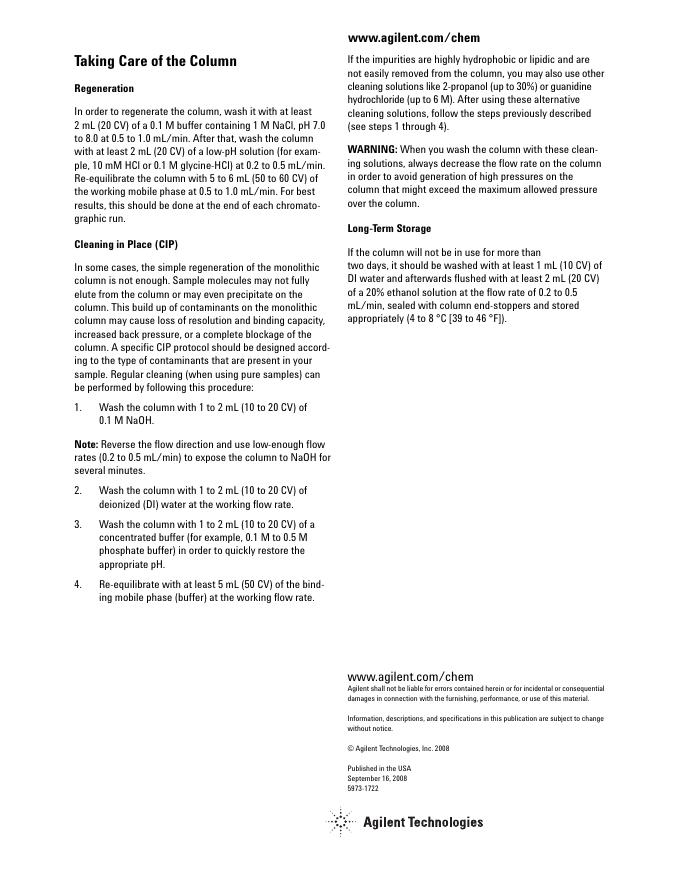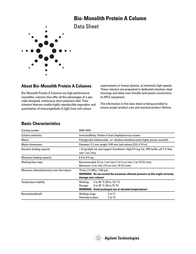 Agilent Technologies Bio-Monolith Protein A Column 数据手册.pdf