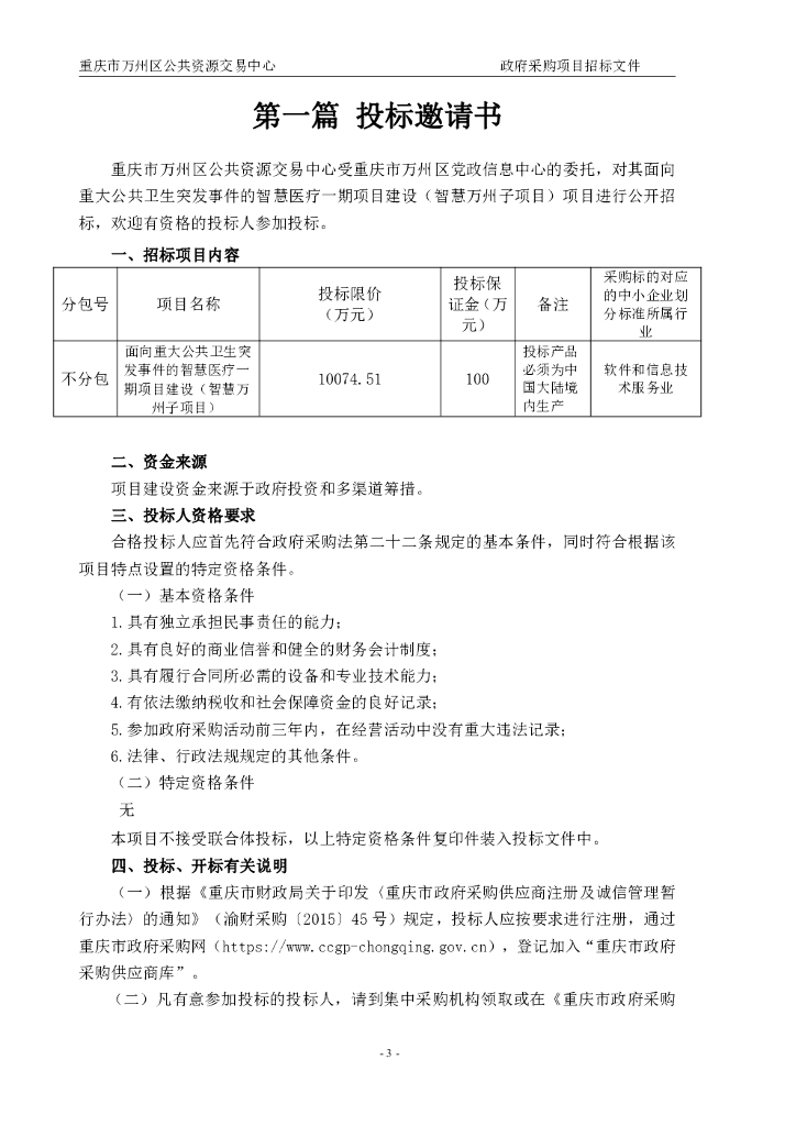 重庆万州:重庆智慧医疗项目招标文件.pdf