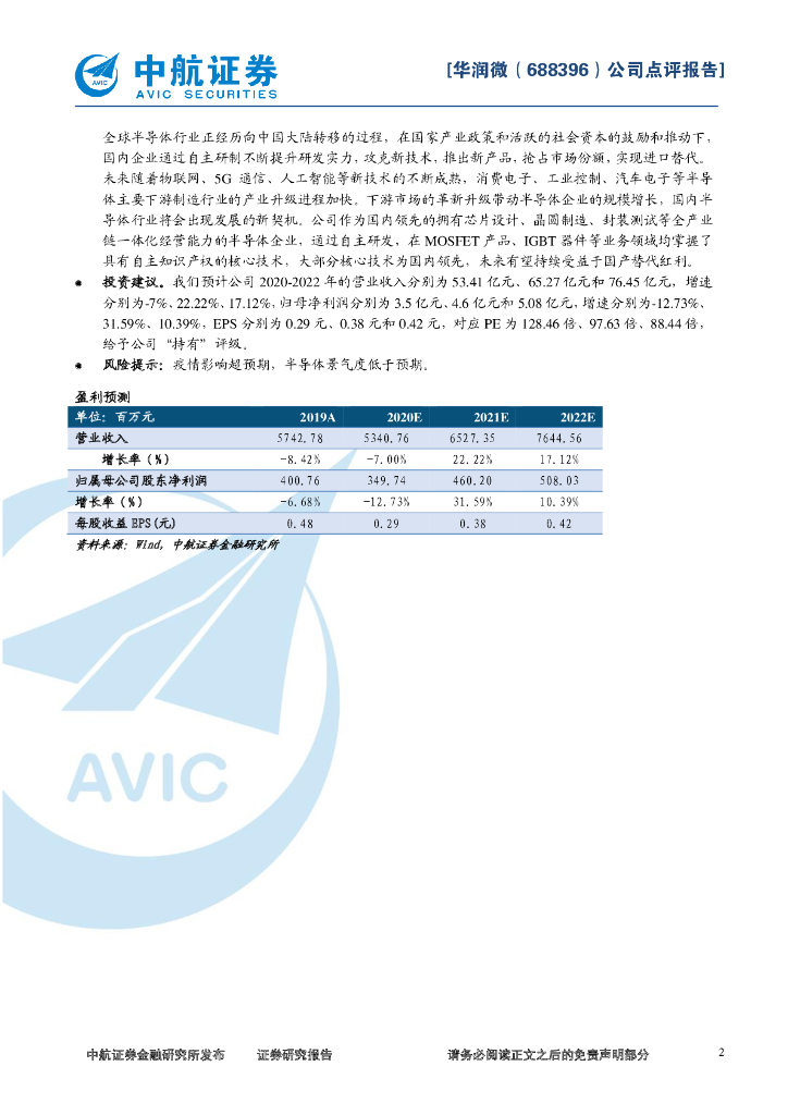 中航证券:华润微(688396)-2019年年报点评:短期业绩承压,长期将持续受益于国产替代红利.pdf