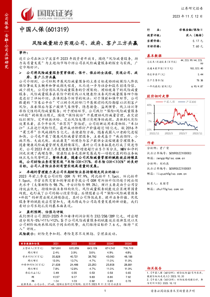 国联证券:中国人保(601319)-风险减量助力实现公司、政府、客户三方共赢.pdf