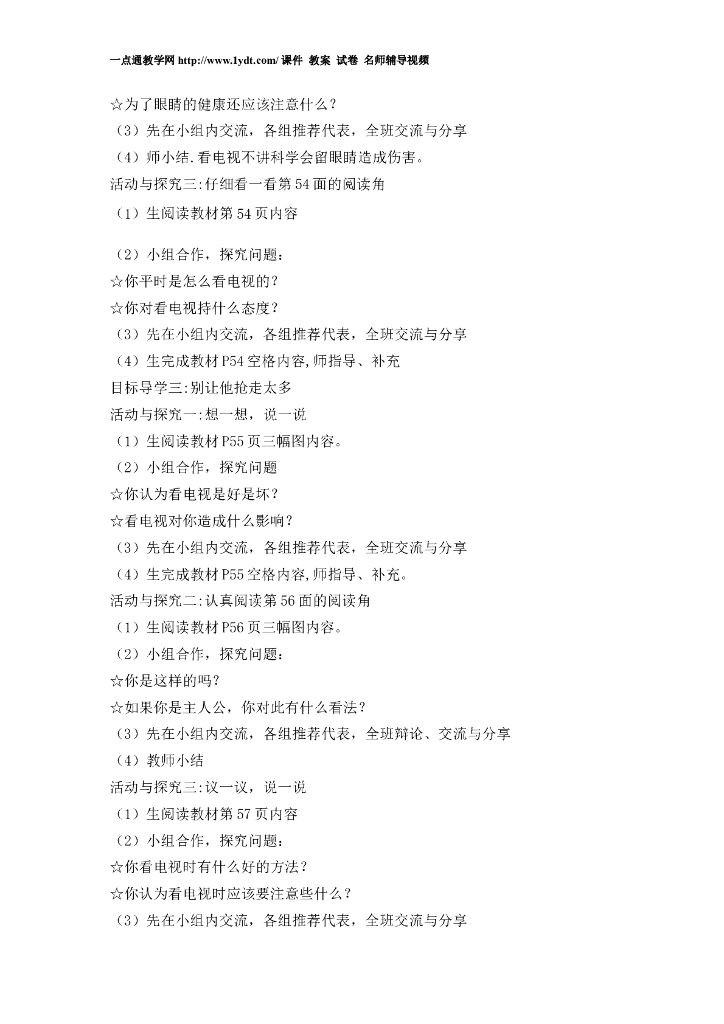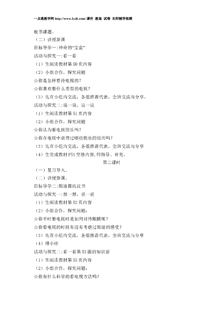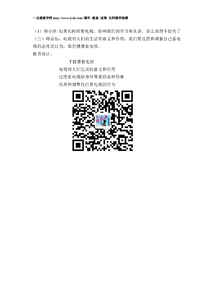 2021四年级上册 人教版小学道德与法治7 健康看电视 教案1-2课时.doc