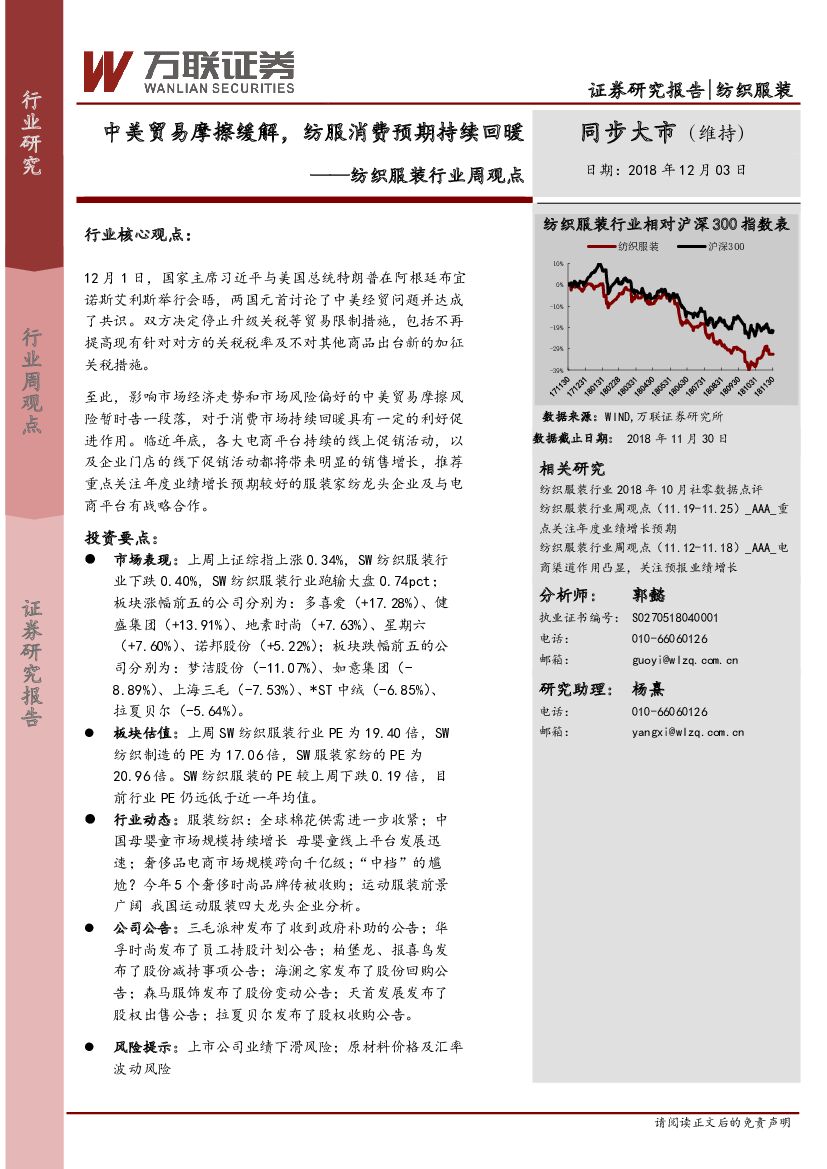 万联证券:纺织服装行业周观点:中美贸易摩擦缓解,纺服消费预期持续回暖.pdf