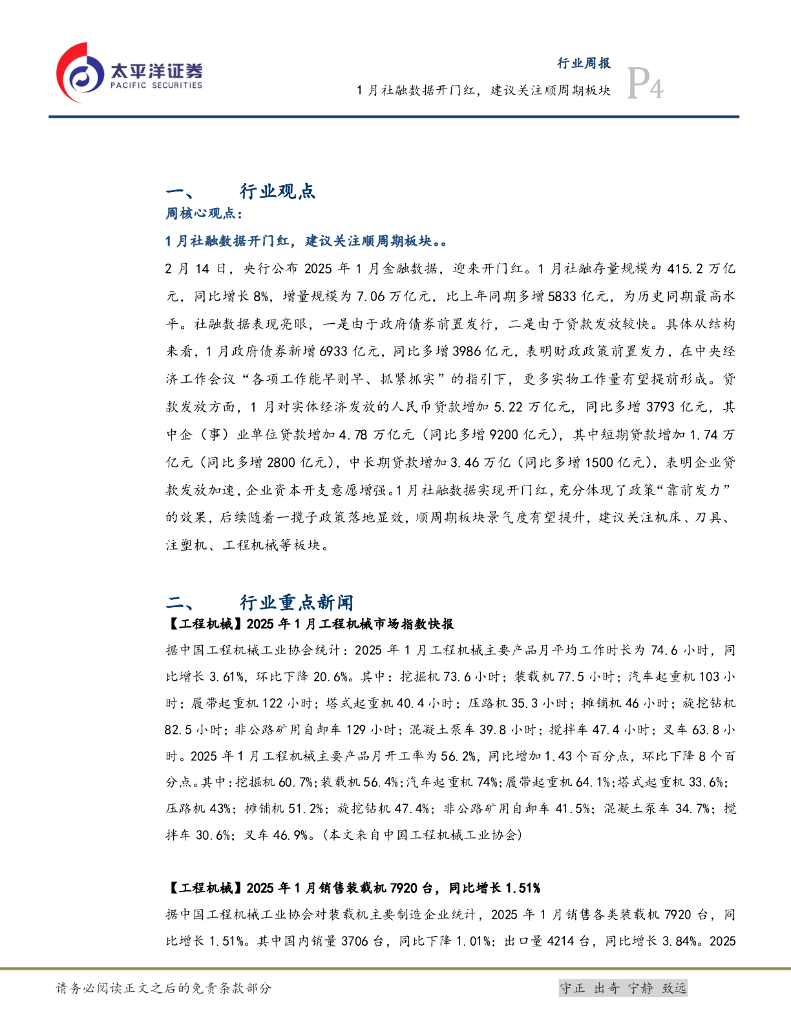 太平洋证券:机械行业周报:1月社融数据开门红,建议关注顺周期板块.pdf