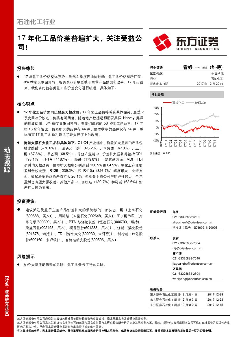 东方证券:石油化工行业动态跟踪:17年化工品价差普遍扩大,关注受益公司!.pdf