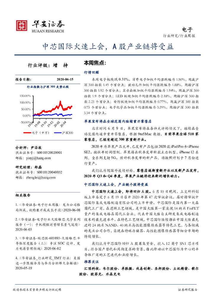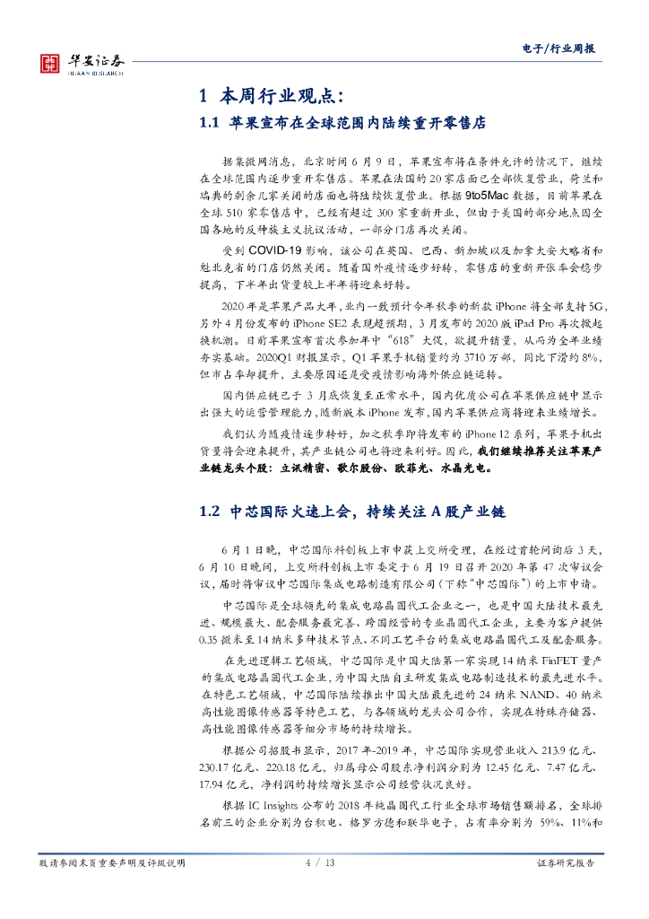 华安证券:电子行业周报:中芯国际火速上会,A股产业链将受益.pdf