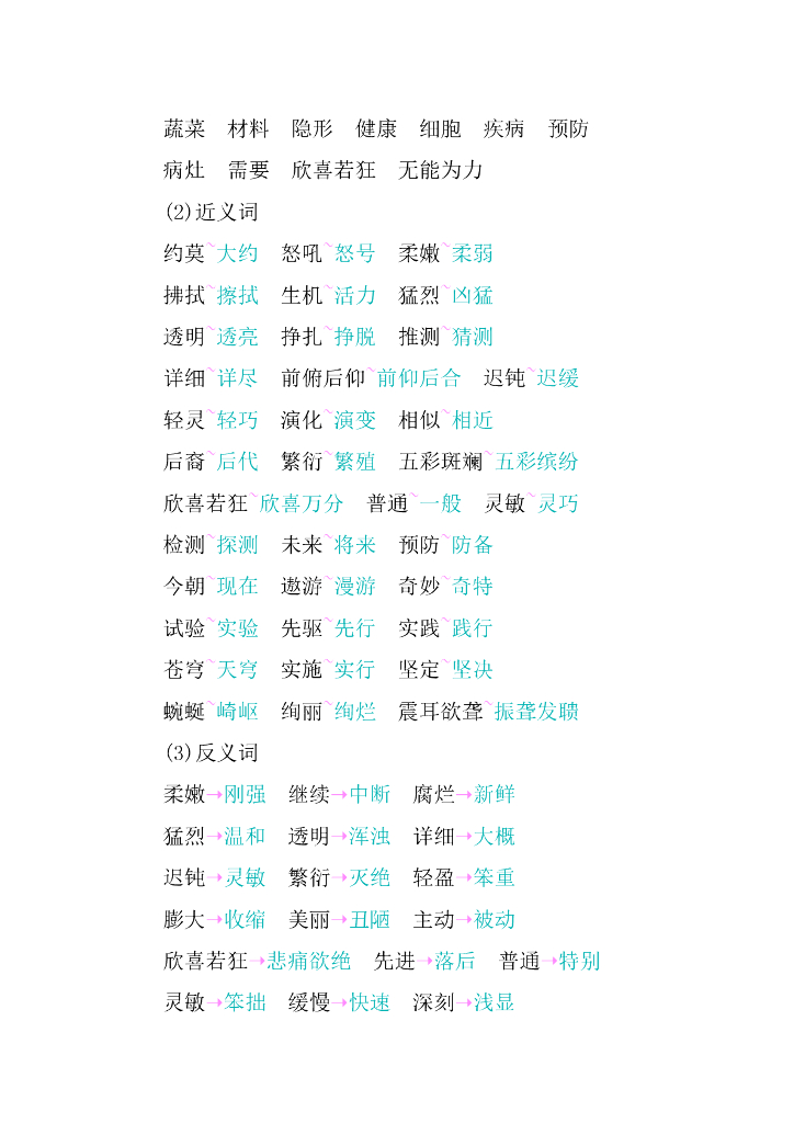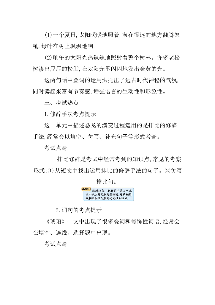 统编语文四年级下册第二单元知识小结.doc