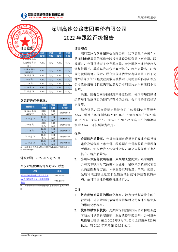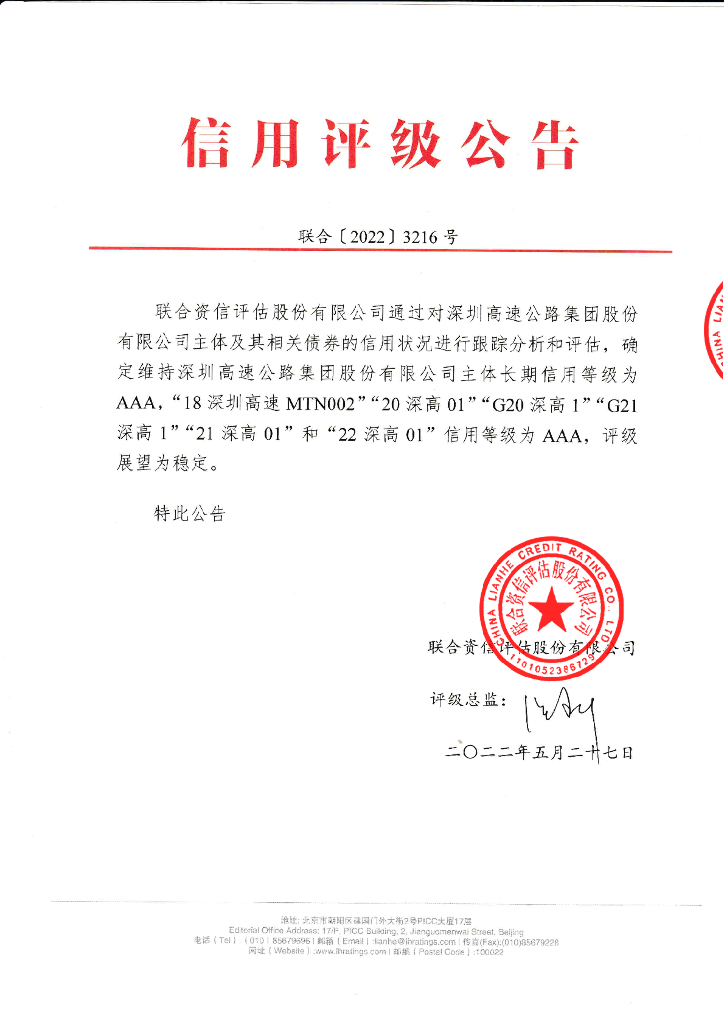 联合资信:深圳高速公路集团股份有限公司2022年跟踪评级报告.pdf