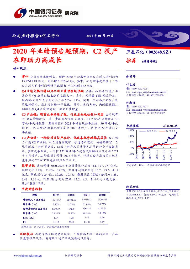 中国银河:卫星石化(002648)-2020年业绩预告超预期,C2投产在即助力高成长.pdf