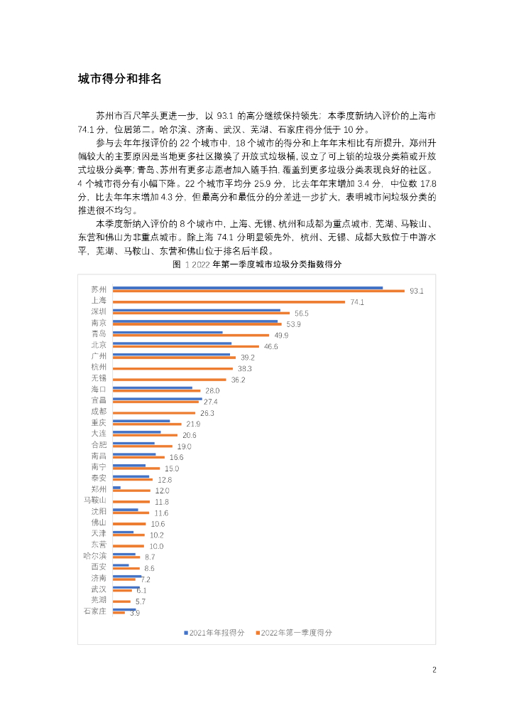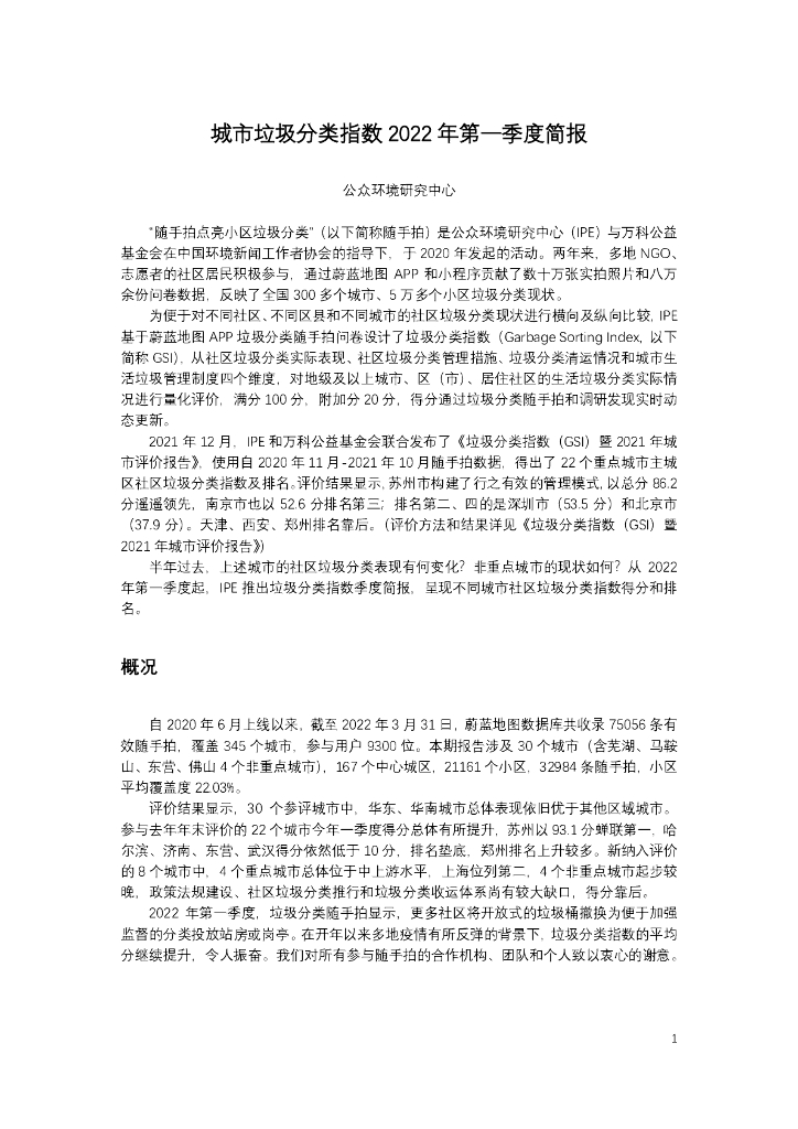 IPE公众环境研究中心:城市垃圾分类指数2022年第一季度简报.pdf