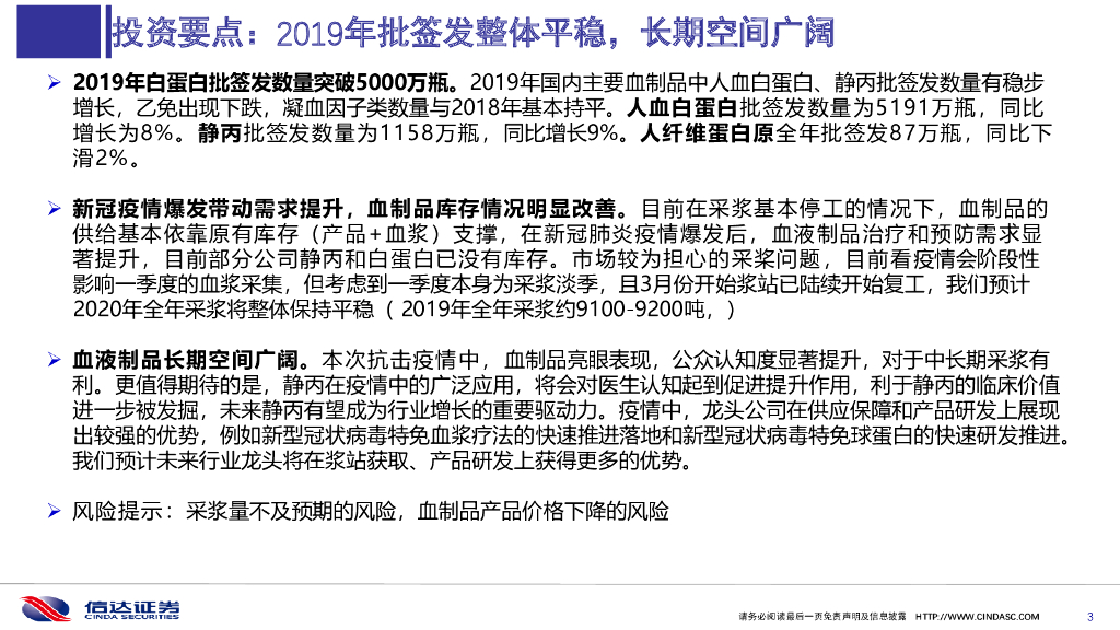信达证券:血液制品2019年批签发回顾与疫情影响分析.pdf