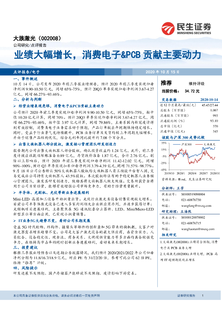 民生证券:大族激光(002008)-业绩大幅增长,消费电子&PCB贡献主要动力.pdf
