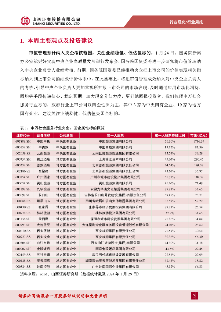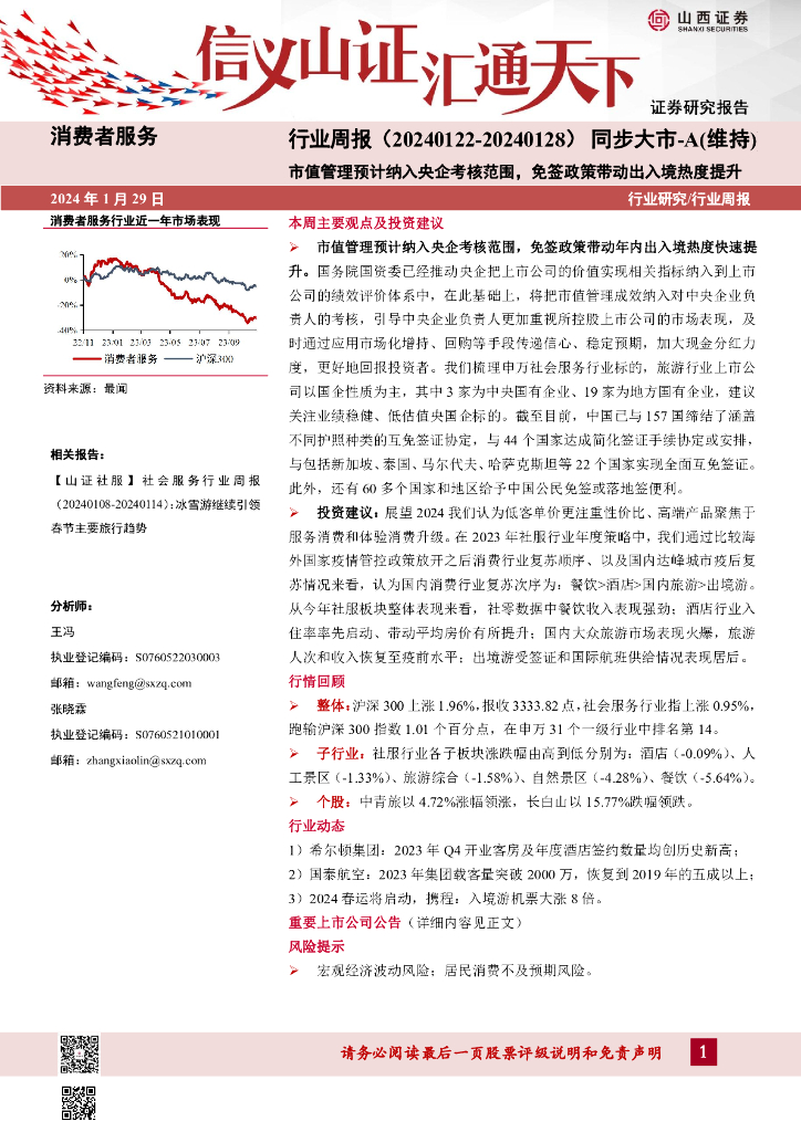 山西证券:行业研究/行业周报:市值管理预计纳入央企考核范围,免签政策带动出入境热度提升.pdf