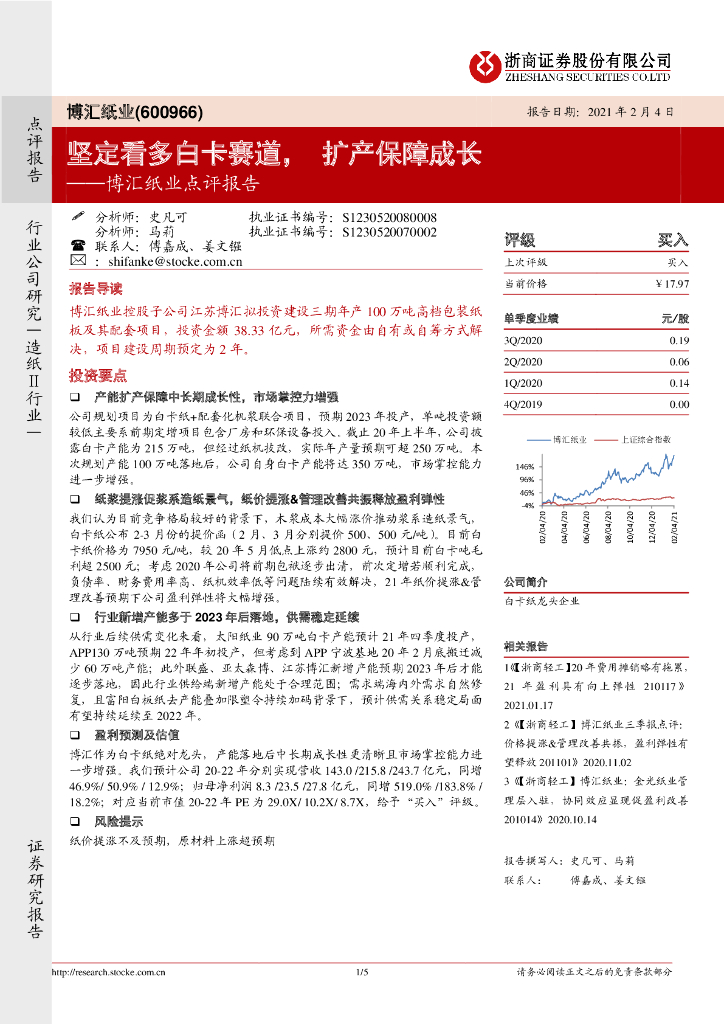 浙商证券:博汇纸业点评报告:坚定看多白卡赛道,扩产保障成长.pdf