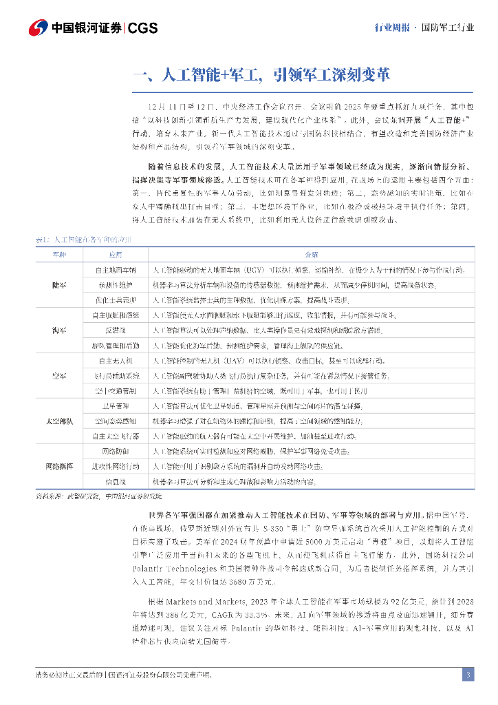 中国银河:军工行业双周报:中央经济工作会解读:“AI+军事”,引领军工深刻变革.pdf