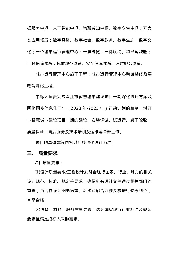 江市智慧城市建设项目一期总承包征求意见公告采购需求.doc