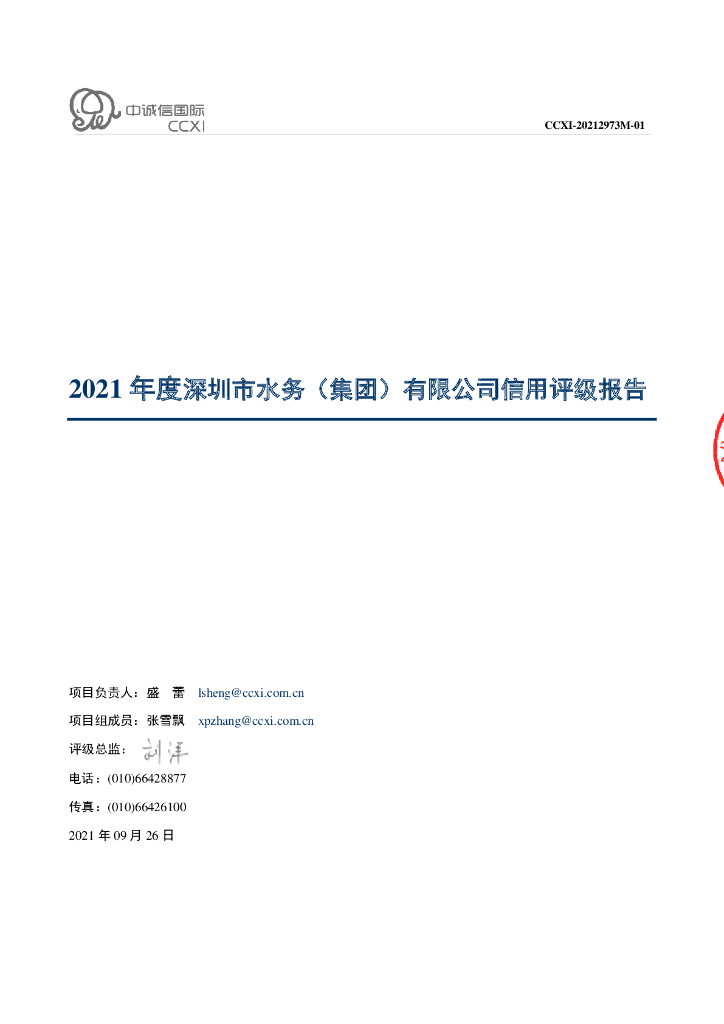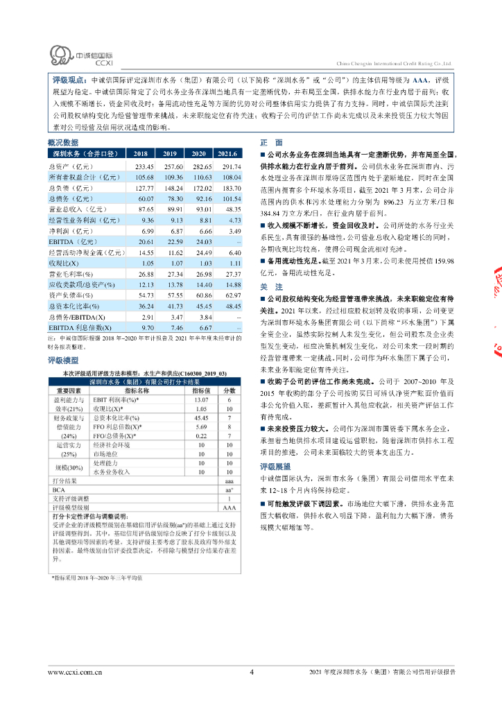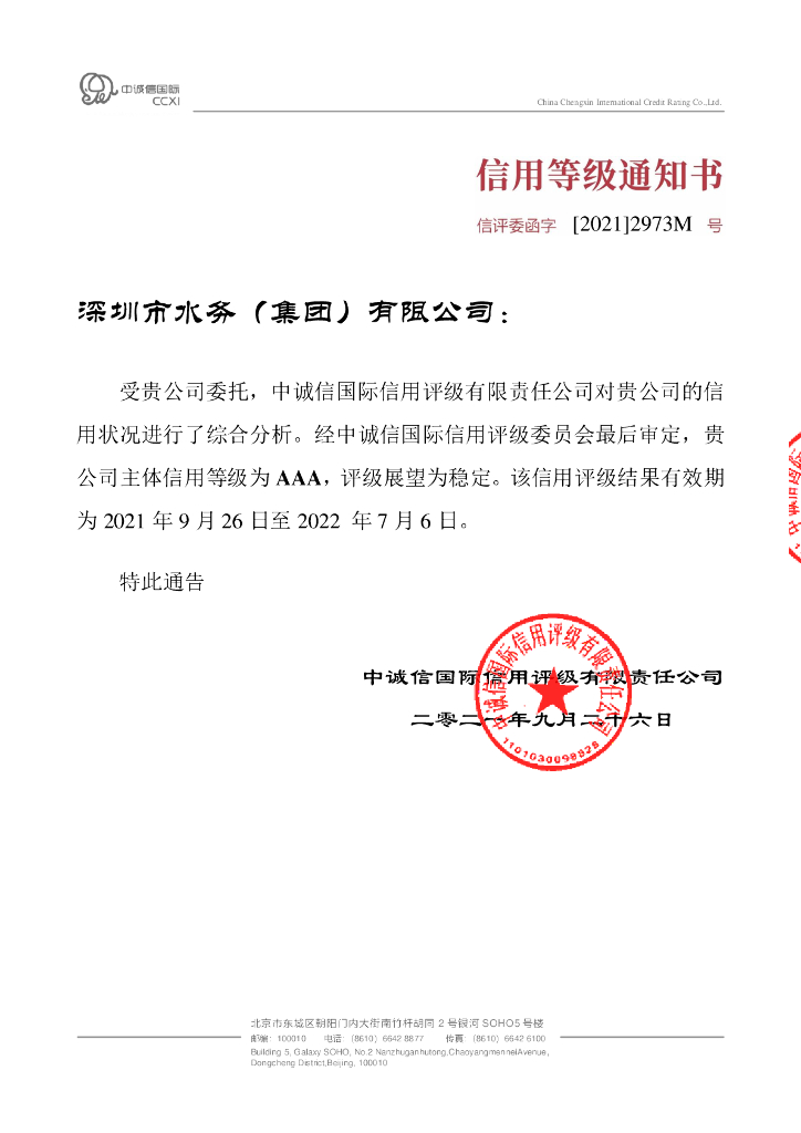 中诚信:深圳市水务(集团)有限公司2021年度主体信用评级报告.pdf
