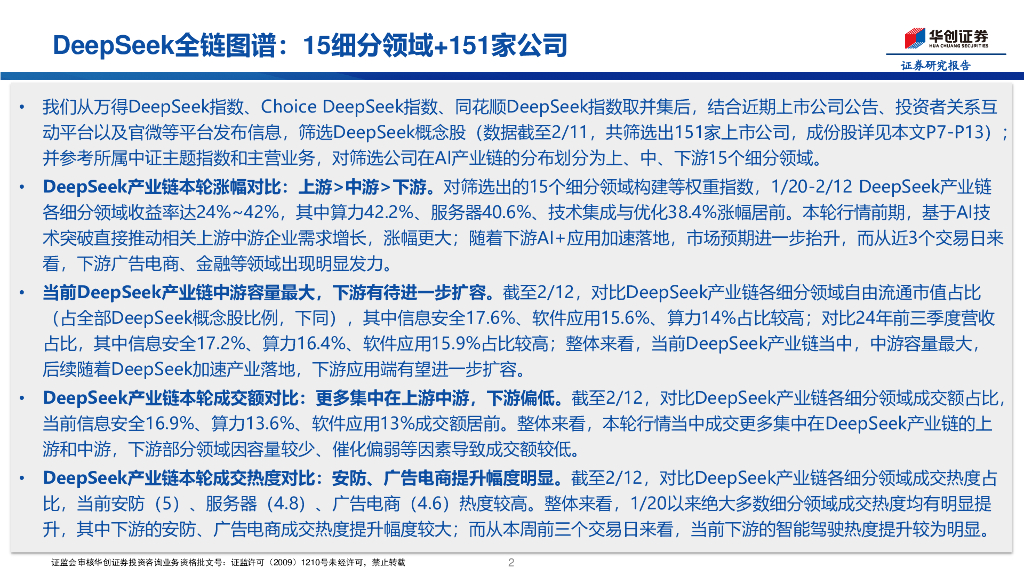 华创证券:科技AI系列2:DeepSeek全链图谱,15细分领域+151家公司.pdf