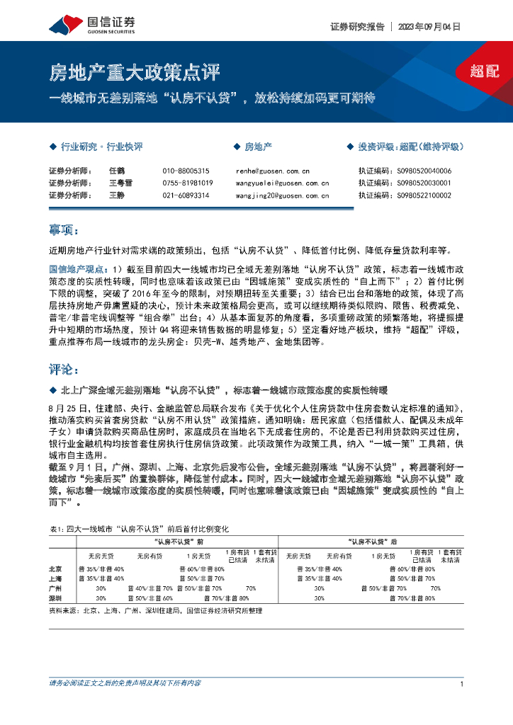 国信证券:房地产重大政策点评:一线城市无差别落地“认房不认贷”,放松持续加码更可期待.pdf
