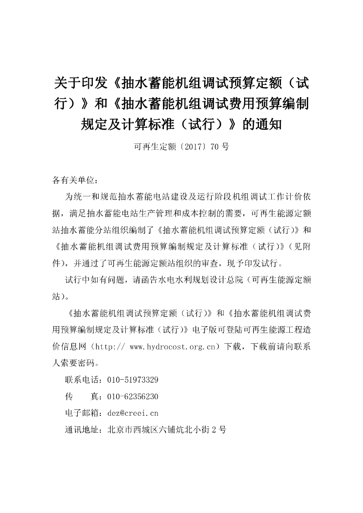 水电水利规划设计总院:抽水蓄能机组调试预算定额(试行)(2017年版).pdf