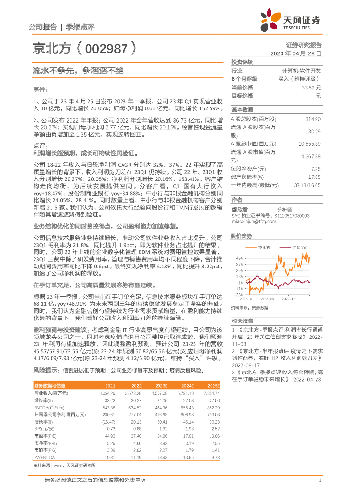 天风证券:京北方(002987)-流水不争先,争滔滔不绝.pdf