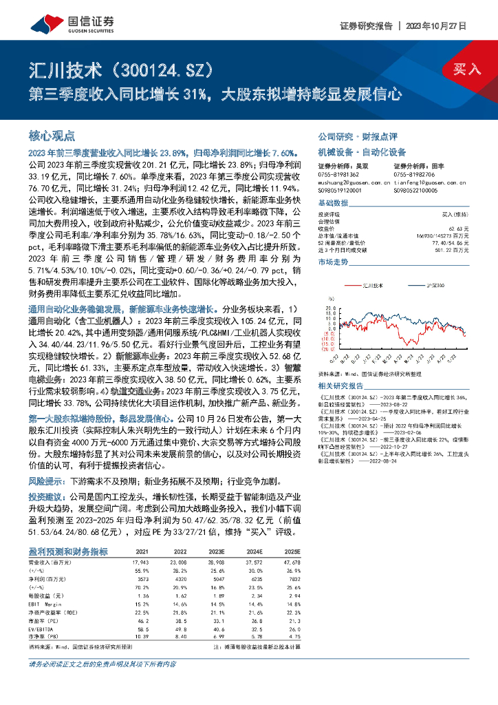 国信证券:汇川技术(300124)-第三季度收入同比增长31%,大股东拟增持彰显发展信心.pdf