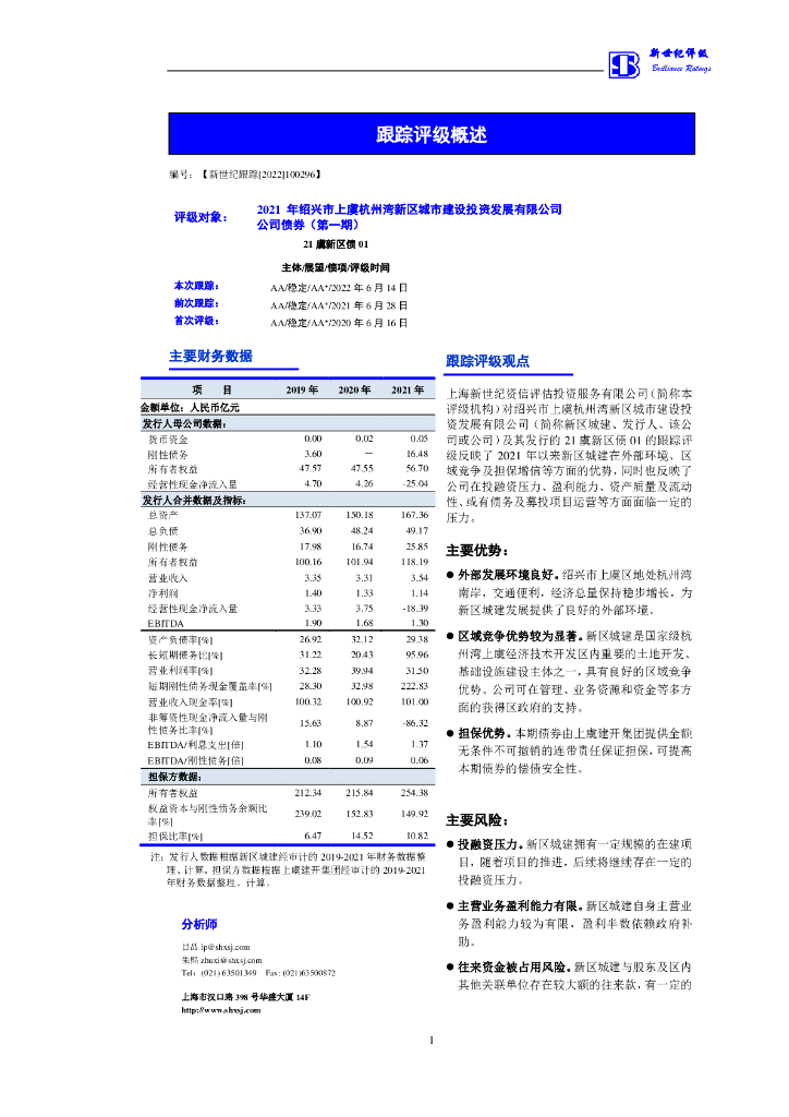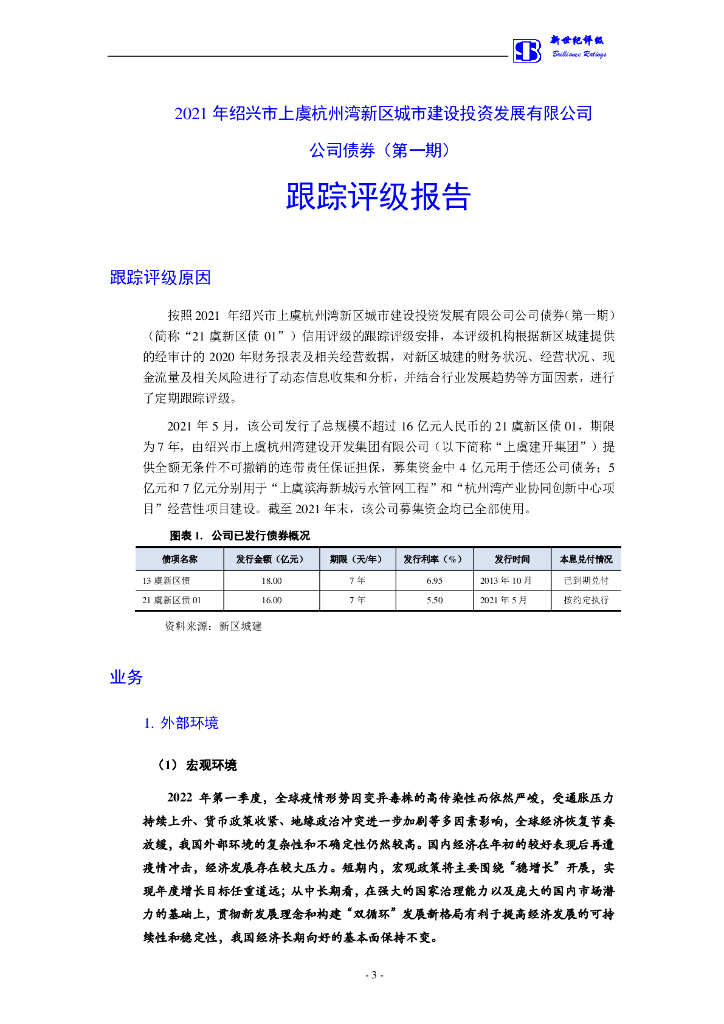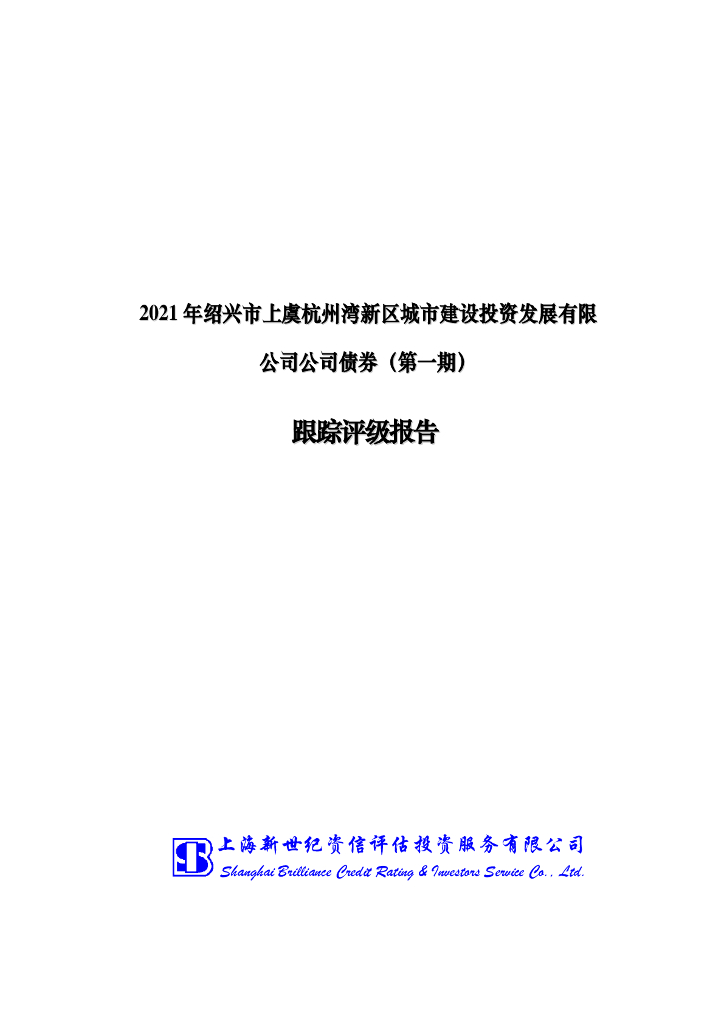 新世纪:2021绍兴市上虞杭州湾新区城城市建设投资发展有限公司公司债券(第一期)跟踪评级报告.pdf