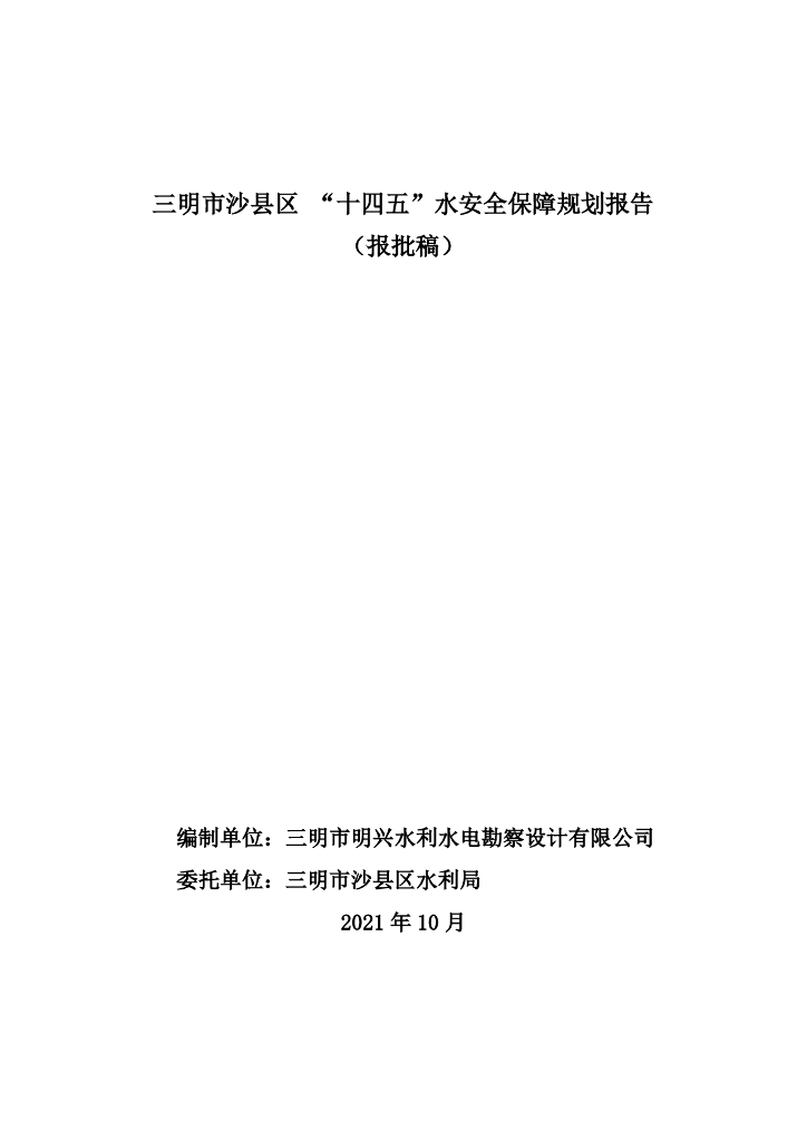 三明市沙县区 “十四五”水安全保障规划报告(报批稿).pdf
