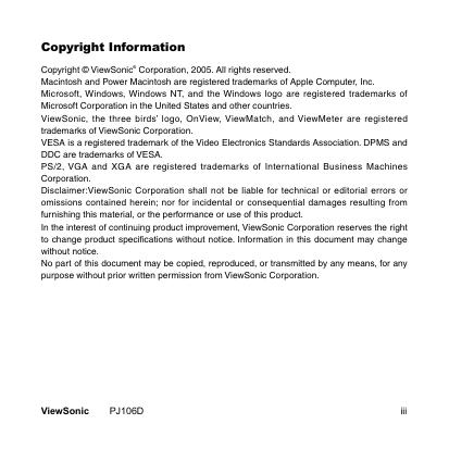 优派 PJ106D SVGA LED Projector 使用手册.pdf