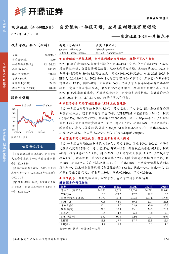 开源证券:东方证券2023一季报点评:自营驱动一季报高增,全年盈利增速有望领跑.pdf