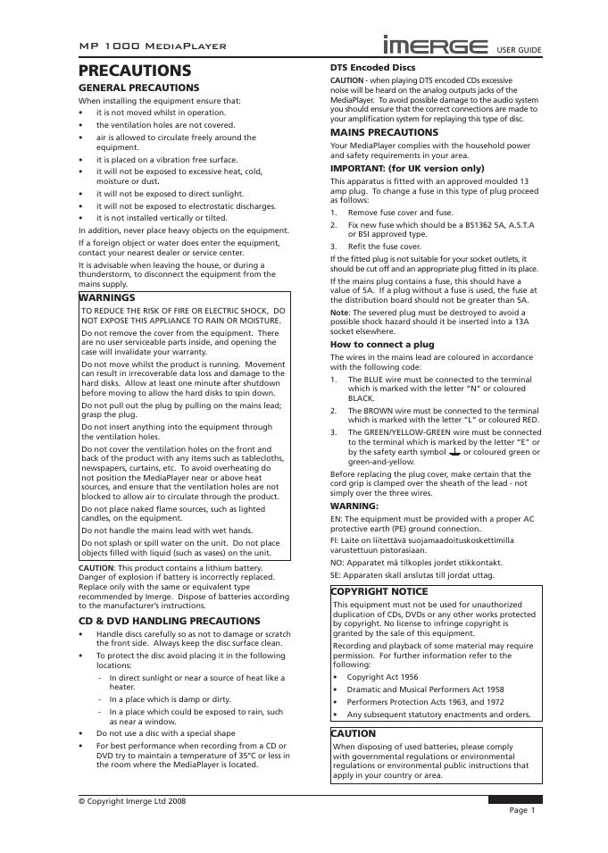 imerge MP1000 NETWORKED AUDIO VIDEO SYSTEM 用户指南.pdf