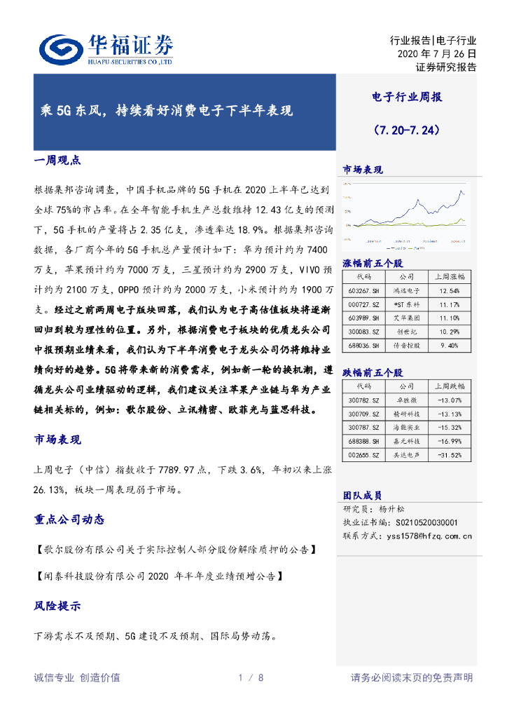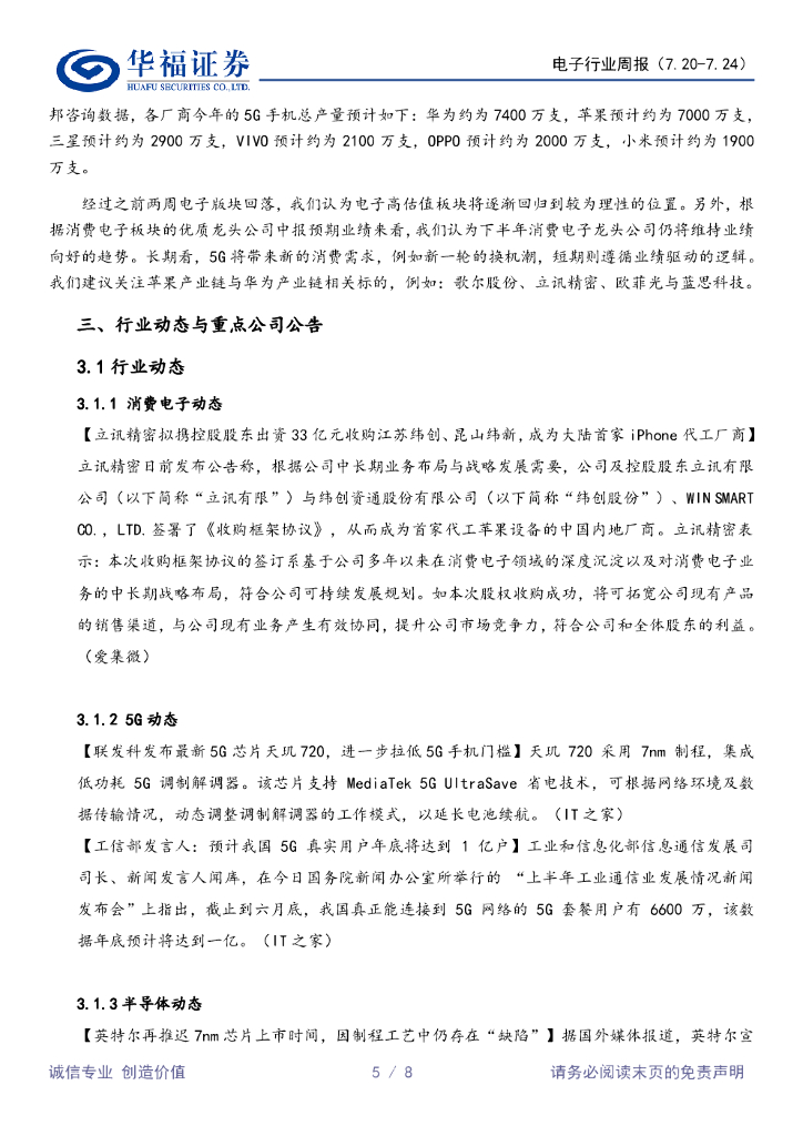华福证券:电子行业周报:乘5G东风,持续看好消费电子下半年表现.pdf