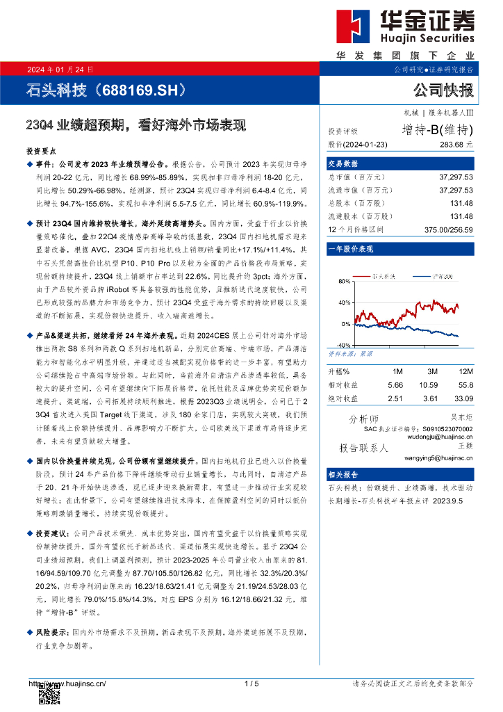 华金证券:石头科技(688169)-23Q4业绩超预期,看好海外市场表现.pdf