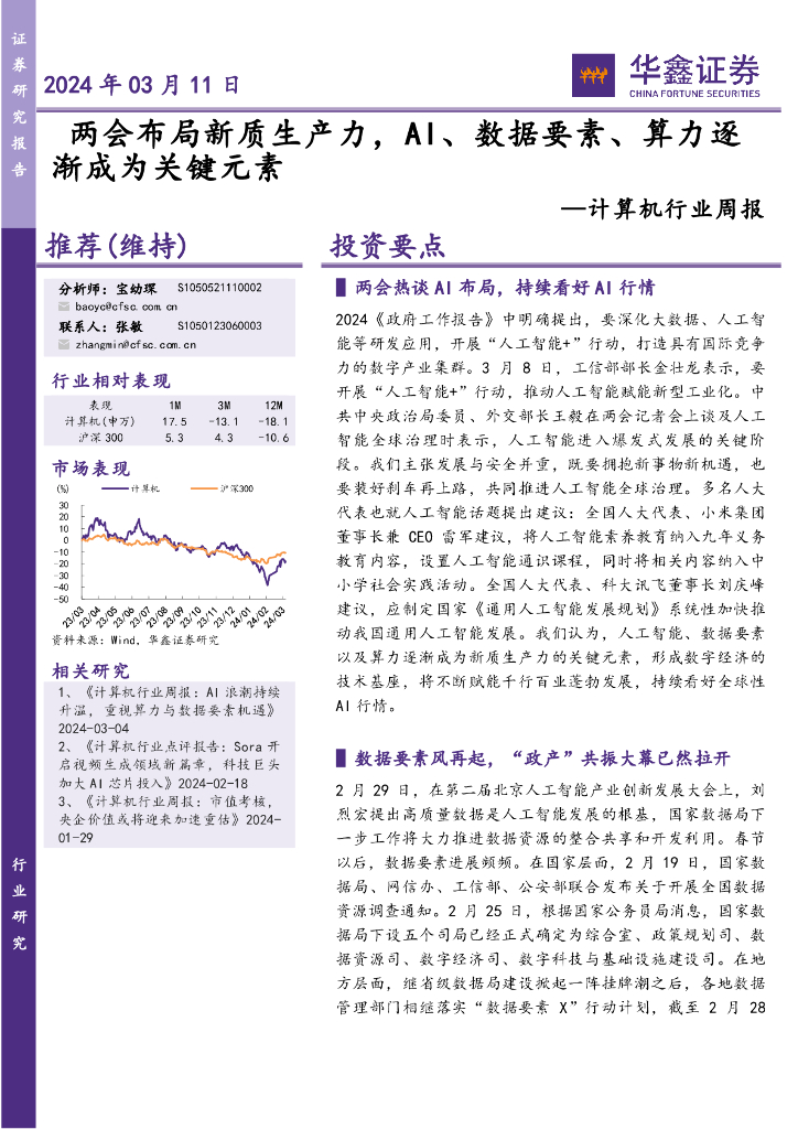 华鑫证券:计算机行业周报:两会布局新质生产力,AI、数据要素、算力逐渐成为关键元素.pdf