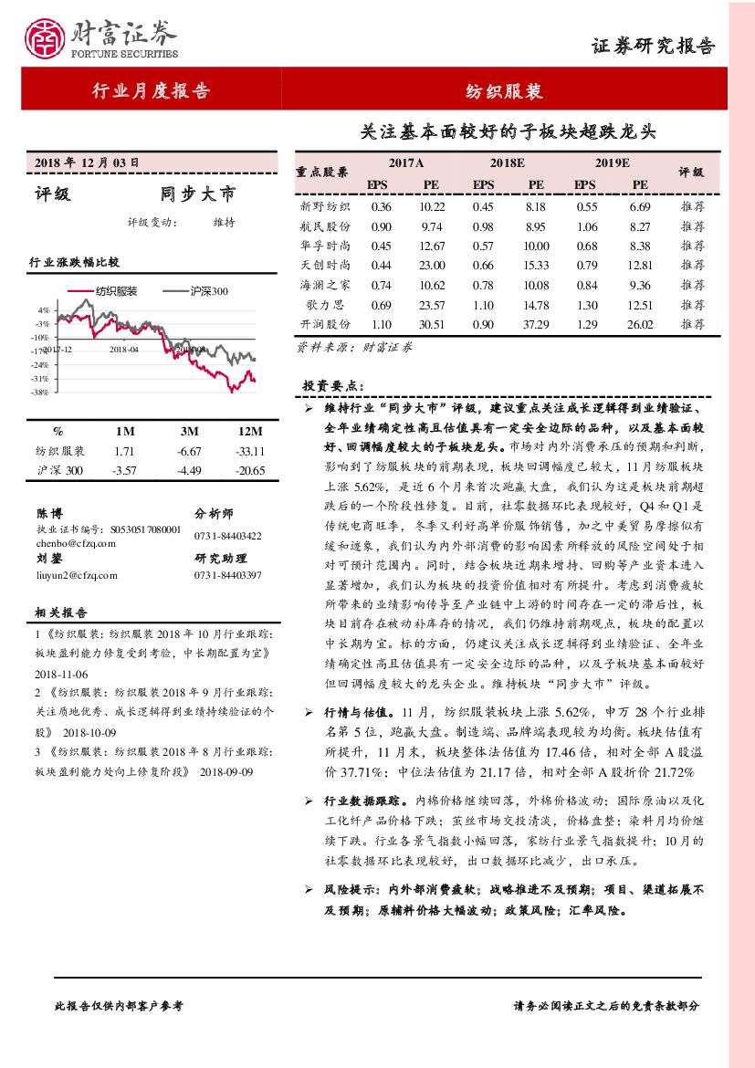 财富证券:纺织服装行业月度报告:关注基本面较好的子板块超跌龙头.pdf