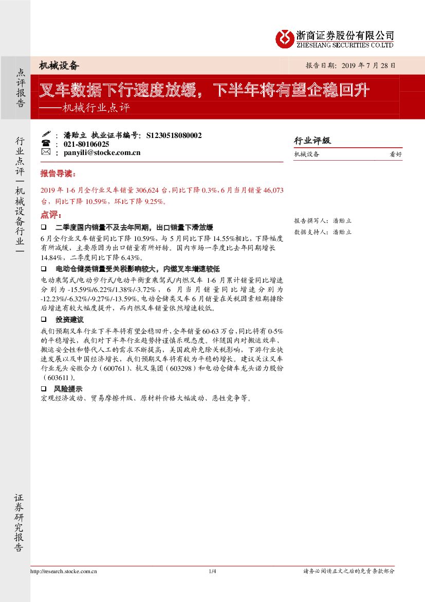 浙商证券:机械行业点评:叉车数据下行速度放缓,下半年将有望企稳回升.pdf