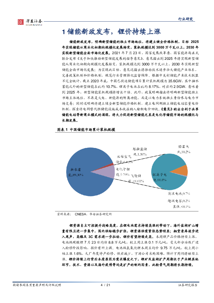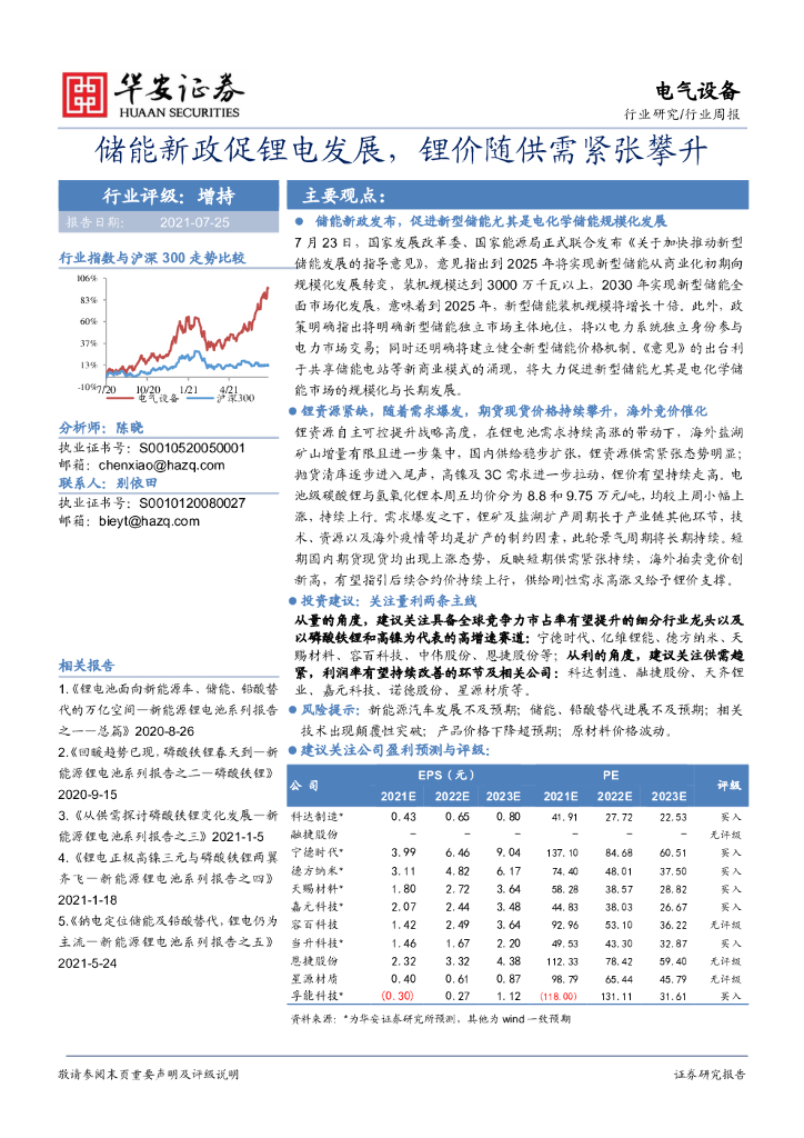华安证券:电气设备行业周报:储能新政促锂电发展,锂价随供需紧张攀升.pdf