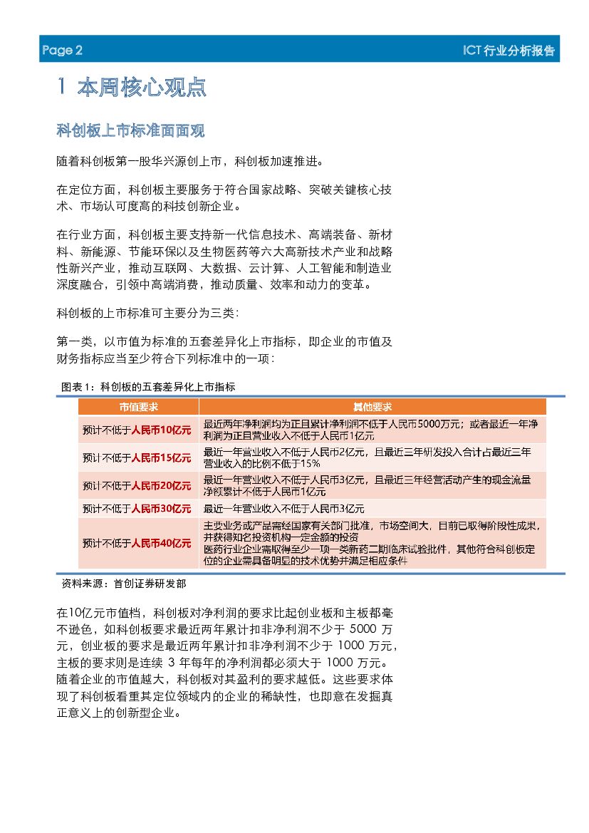 首创证券:ICT行业周报:科创板上市标准面面观.pdf