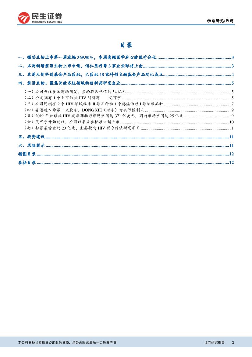 民生证券:科创板生物医药公司系列研究第17期:微芯生物正式上市,创新药企业前沿生物IPO.pdf