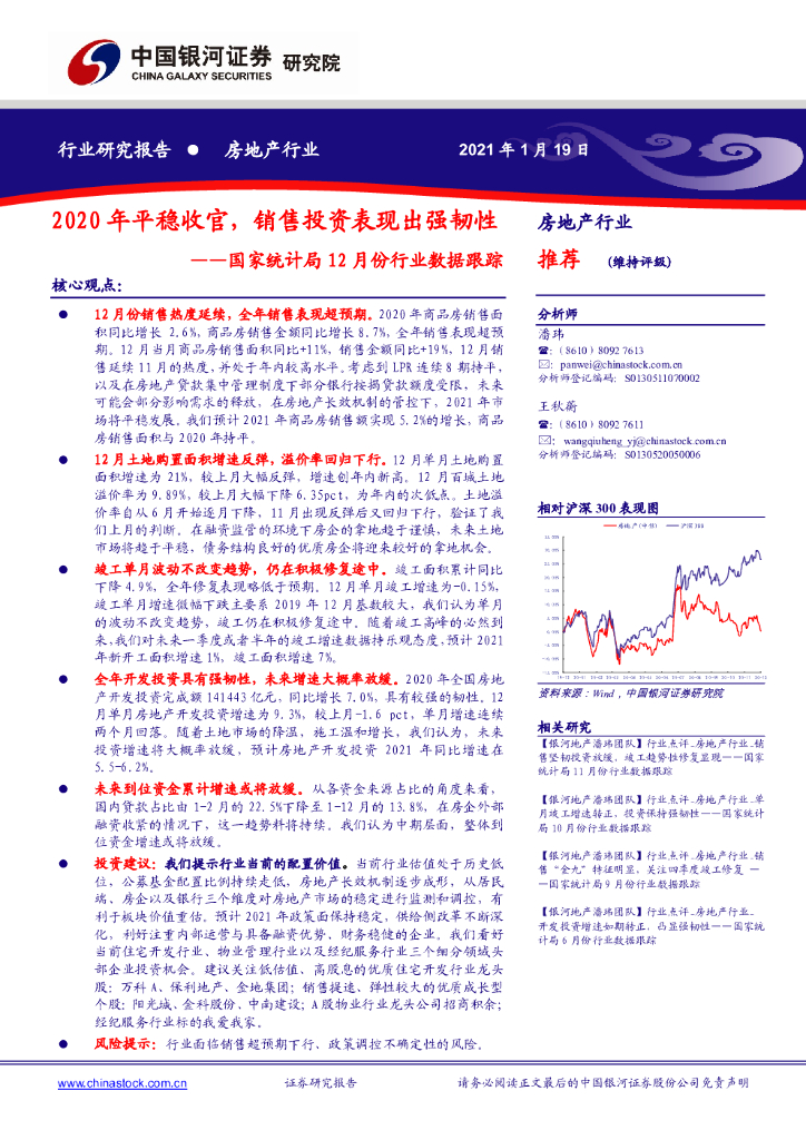 中国银河:房地产行业-国家统计局12月份行业数据跟踪:2020年平稳收官,销售投资表现出强韧性.pdf