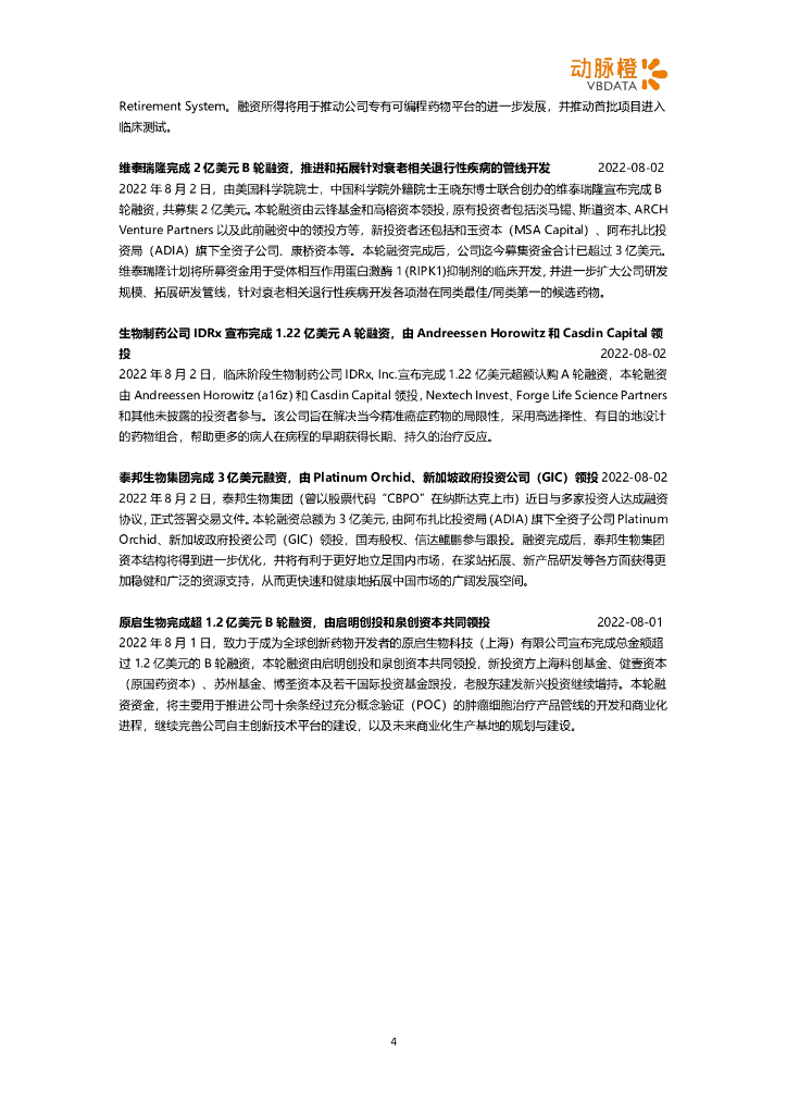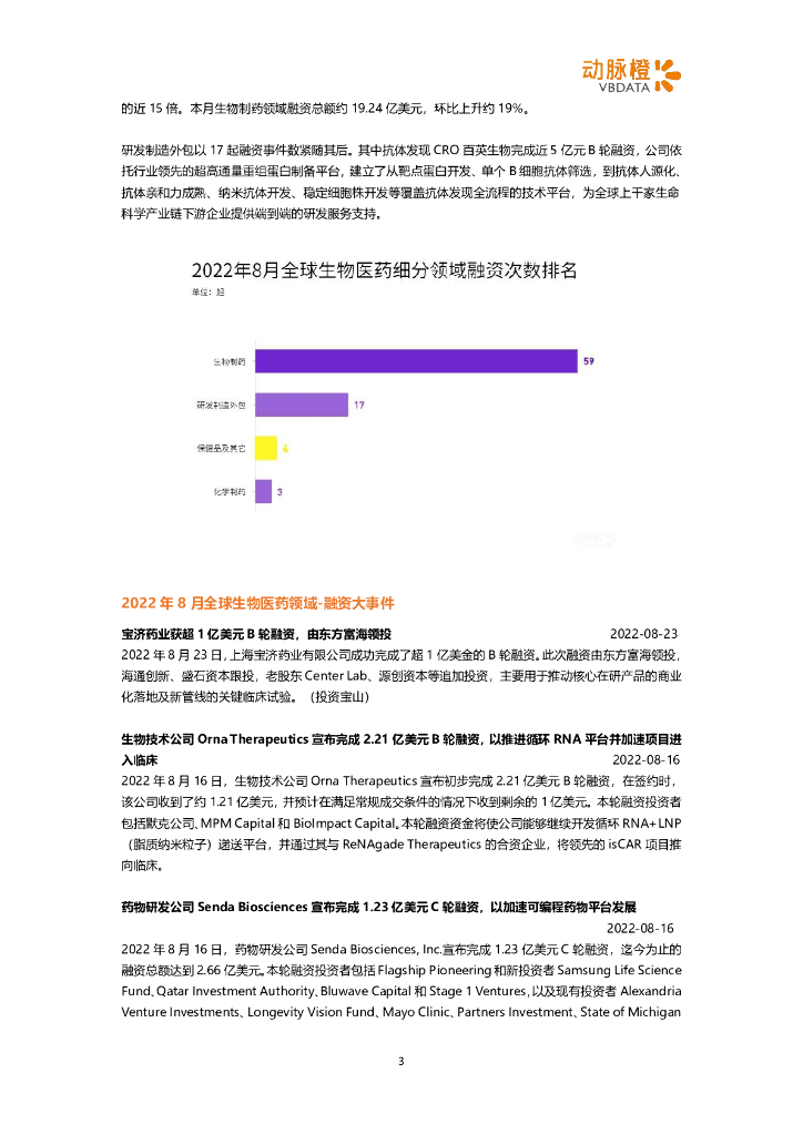 动脉橙:2022年8月全球生物医药投融资月报.pdf