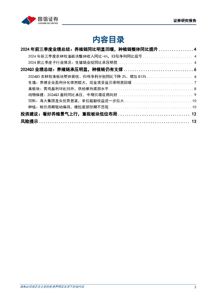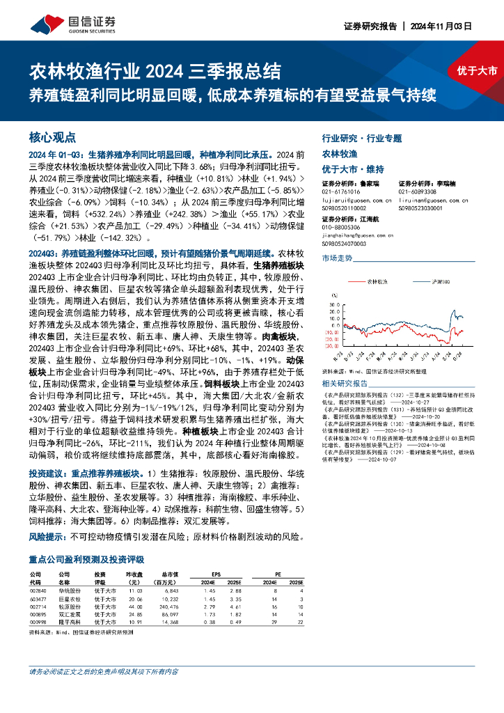 国信证券:农林牧渔行业2024三季报总结:养殖链盈利同比明显回暖,低成本养殖标的有望受益景气持续.pdf