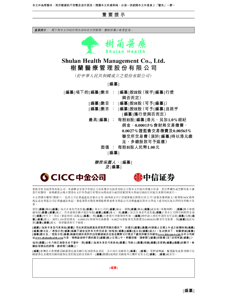 Shulan Health树兰医疗管理股份有限公司港交所IPO上市招股说明书(2024年更新版).pdf