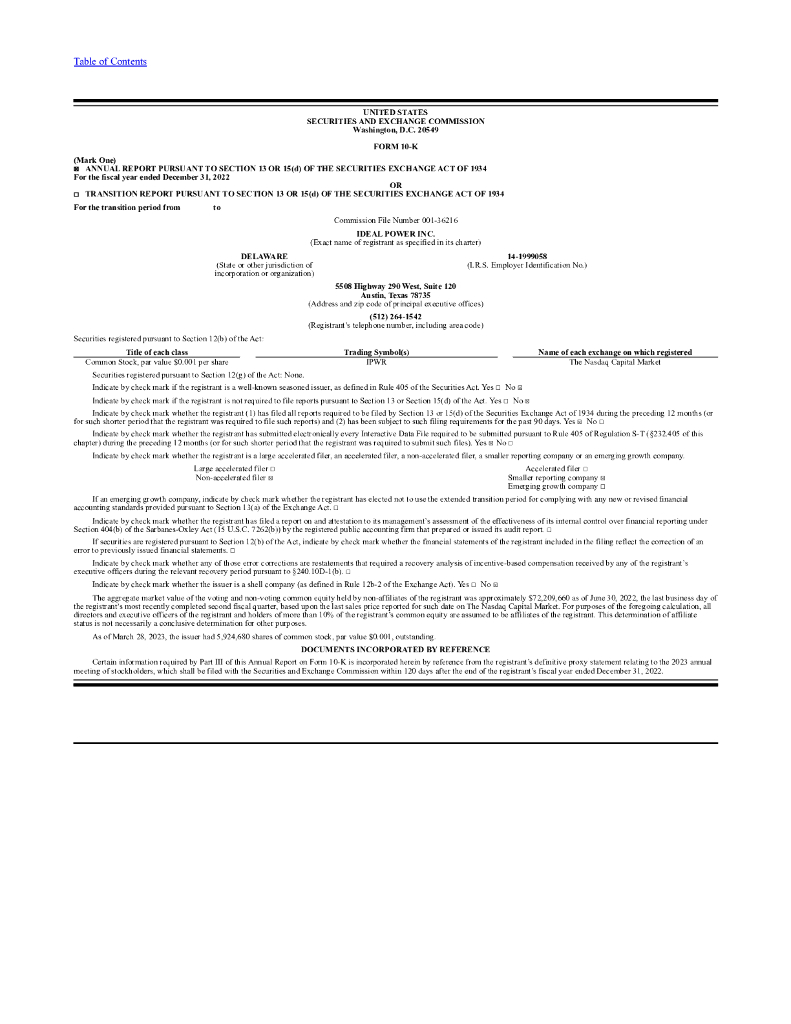 Ideal Power(IPWR)2022财年年度报告(英文版).pdf